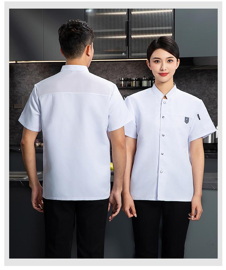 Ropa de trabajo de chef, manga corta, botonadura sencilla, para hotel, restaurante, olla caliente, restaurante, cocina, panadería, ropa de verano fina