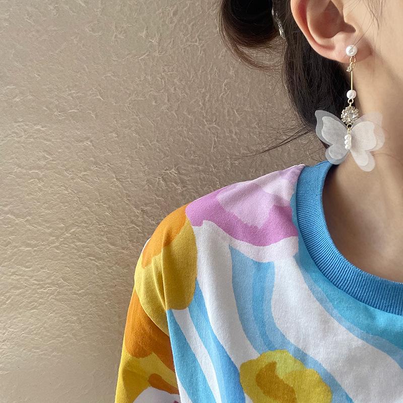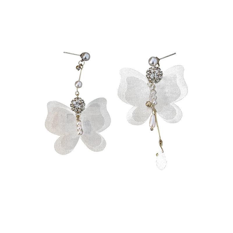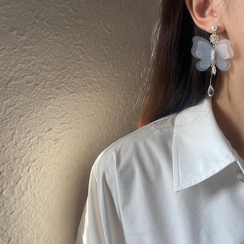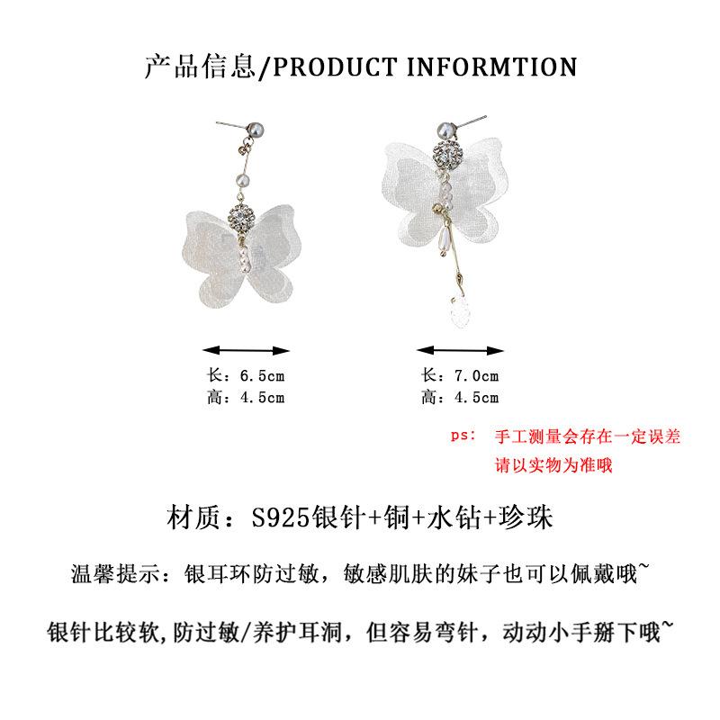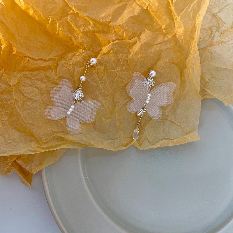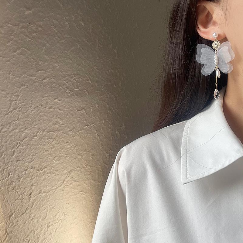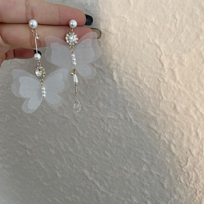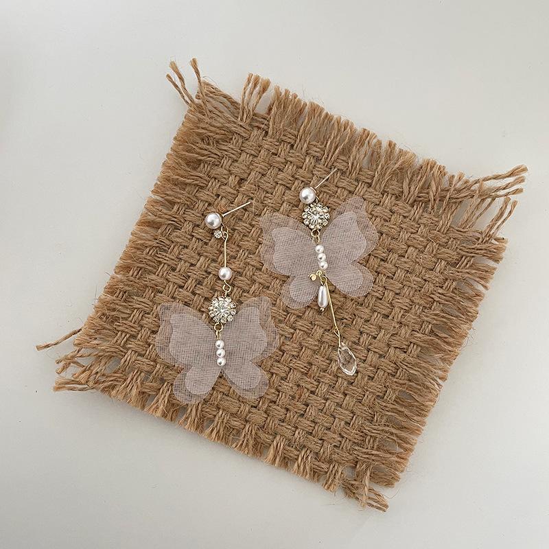 Pendientes de plata S925 con forma de mariposa, perlas y hadas frescas, con borlas de cristal, elegantes, para mujer, 154