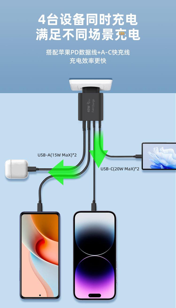 40W US standard 2C + 2A, 40w european standard, 40W British Standard, PD fast charging line 2 m, PD fast charg...