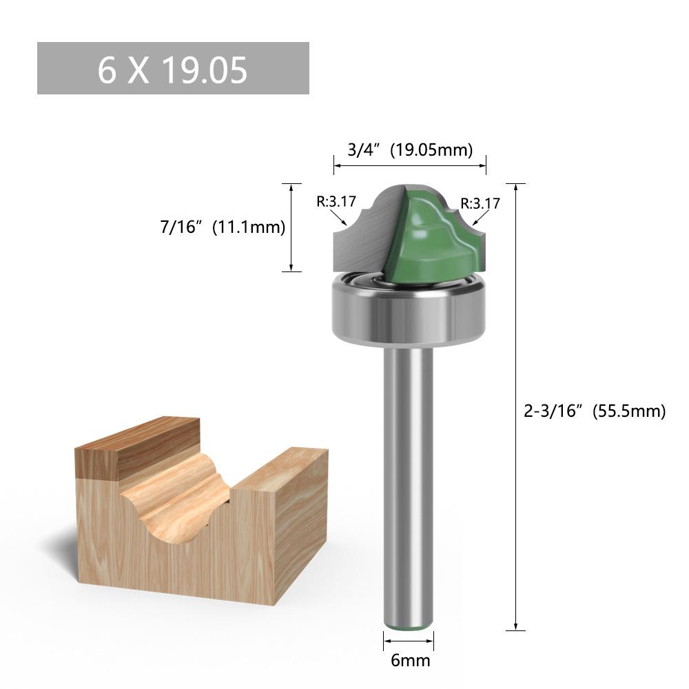 Los mangos de las fresas para carpintería incluyen: 3 mm, 6 mm, 1/4" (6,35 mm), 8 mm, 12 mm, 1/2" (12,7 mm)