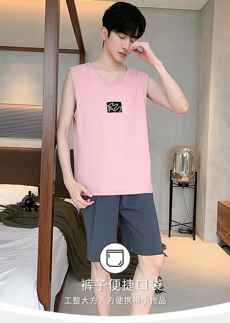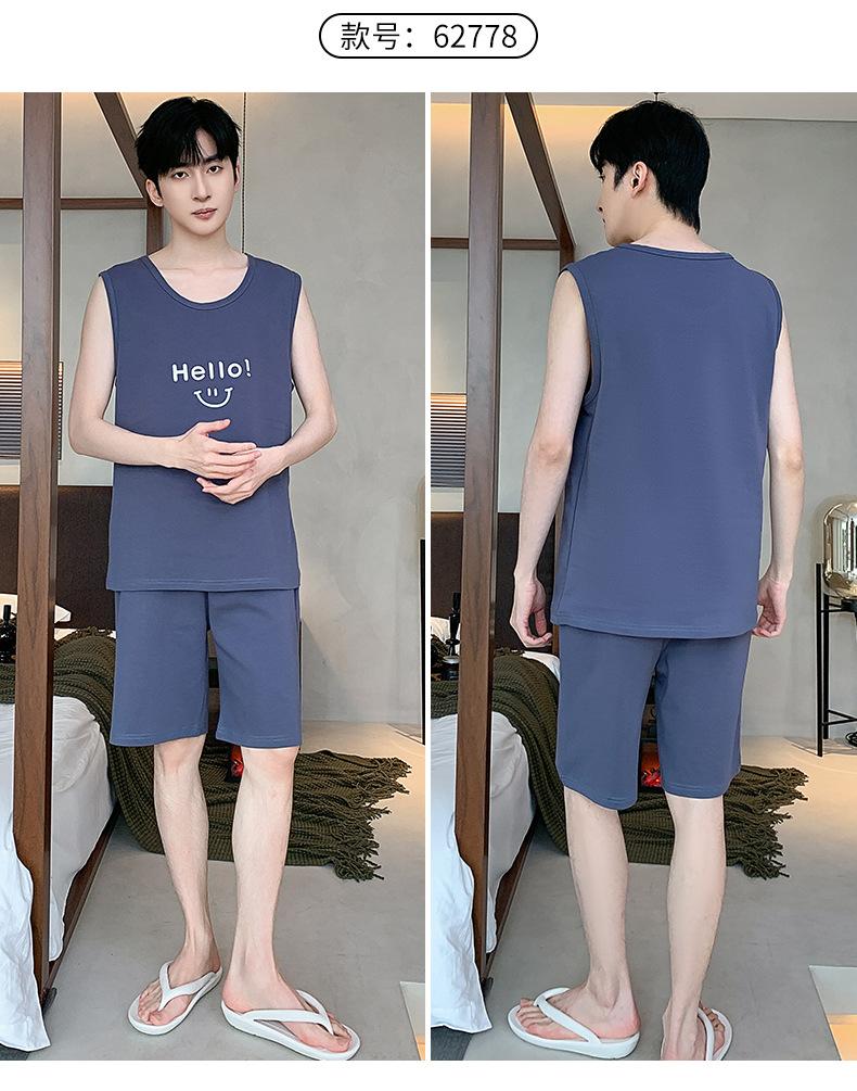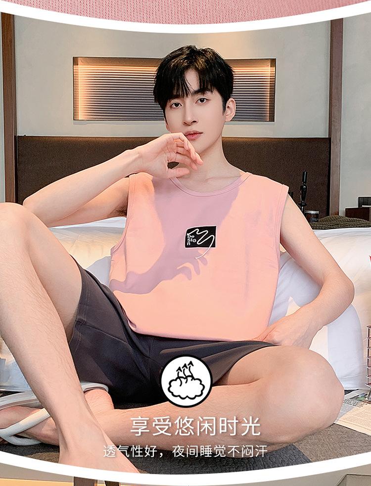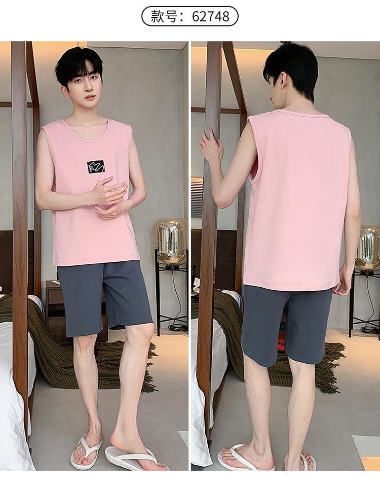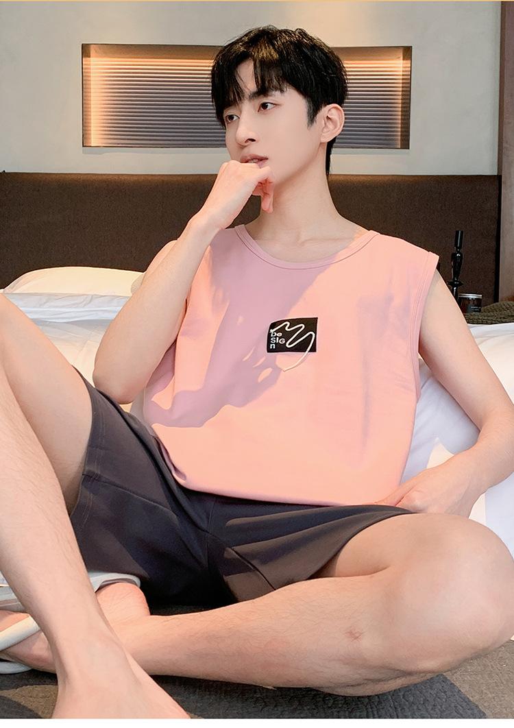 Pijama de verano para hombre 100 % algodón, sin mangas, de manga corta, informal, de color liso, para uso en el hogar, ideal para jóvenes, para usar al aire libre.