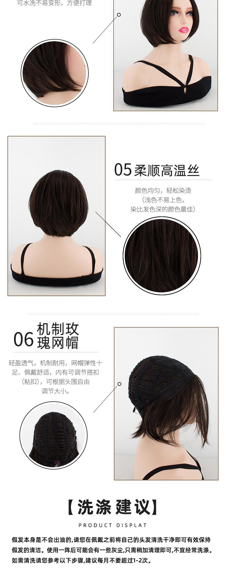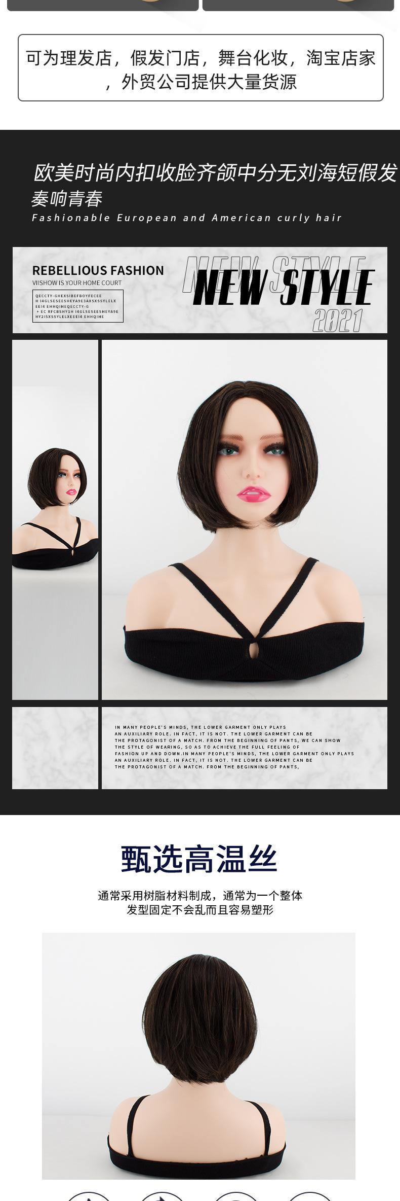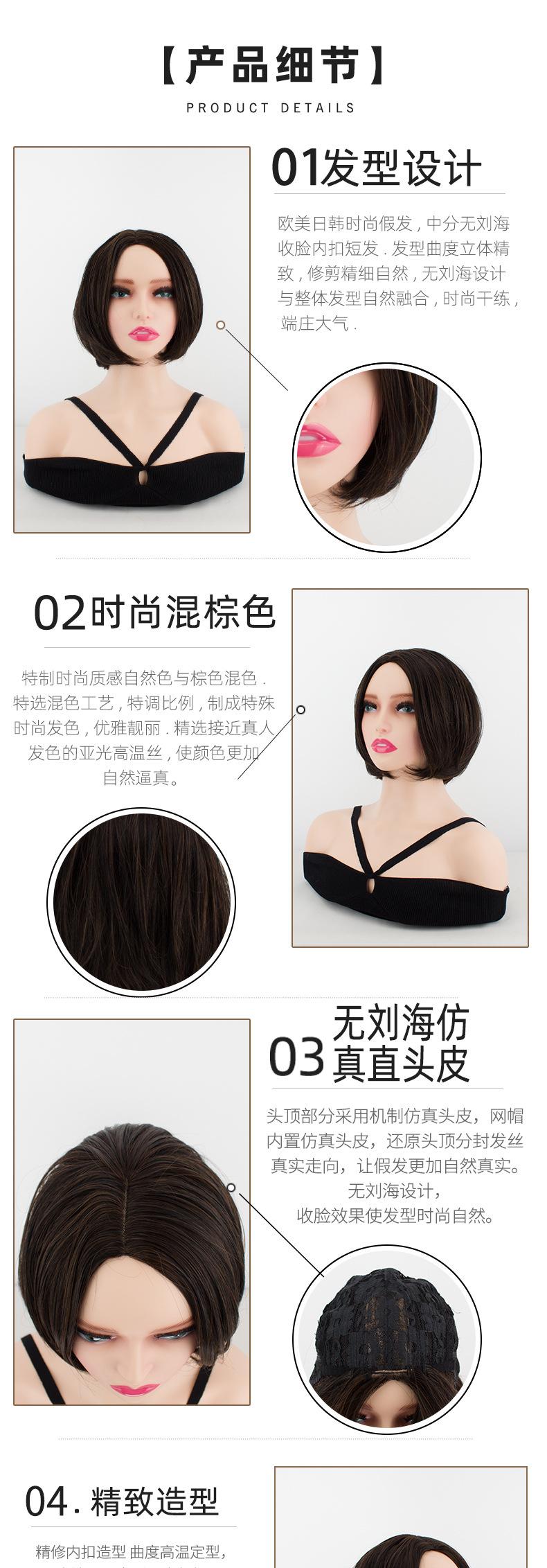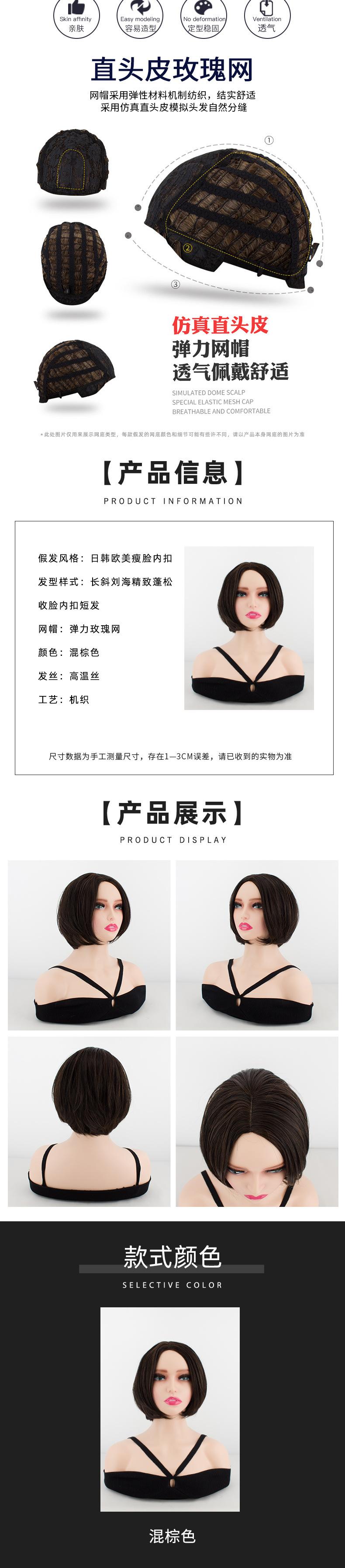 Peluca de moda de comercio exterior para mujer, cabello corto liso, hebilla, cabeza ondulada esponjosa, peluca de cabello artificial marrón, conjunto al por mayor