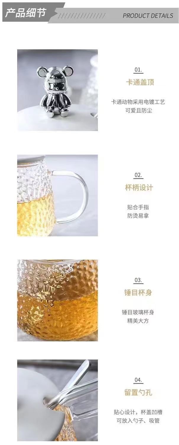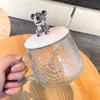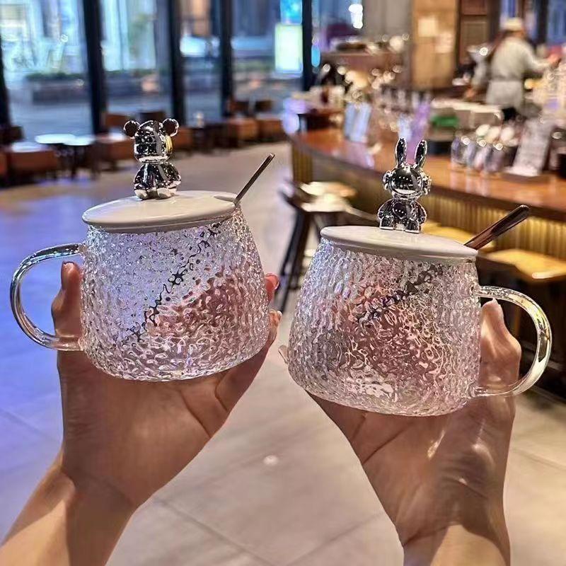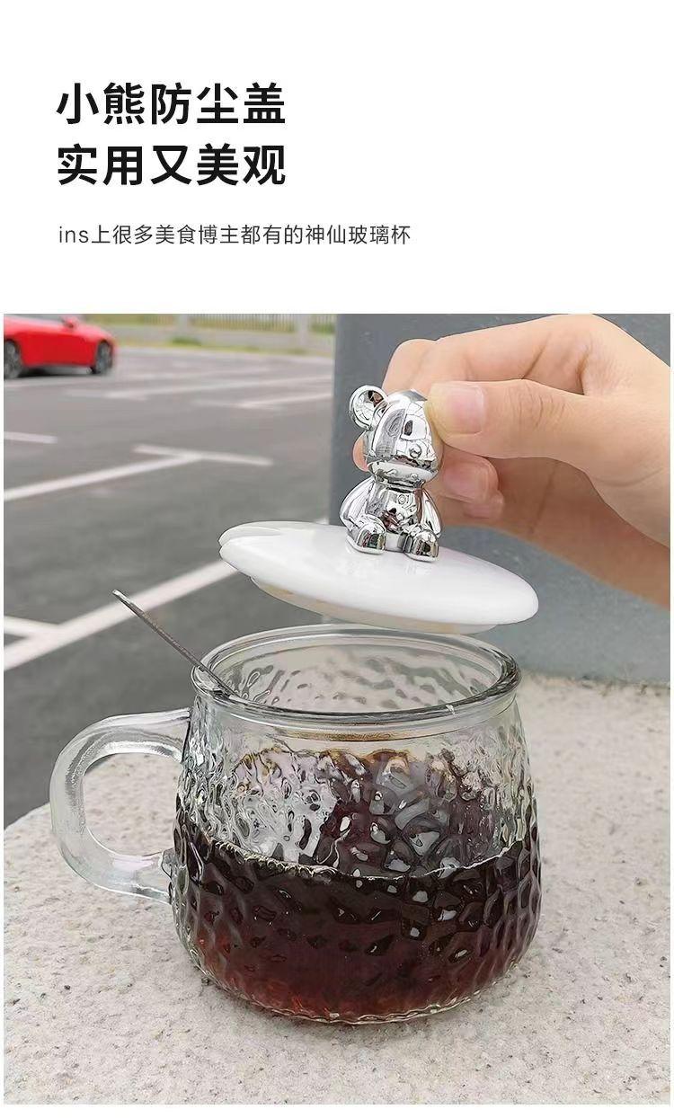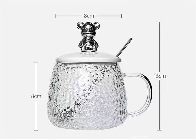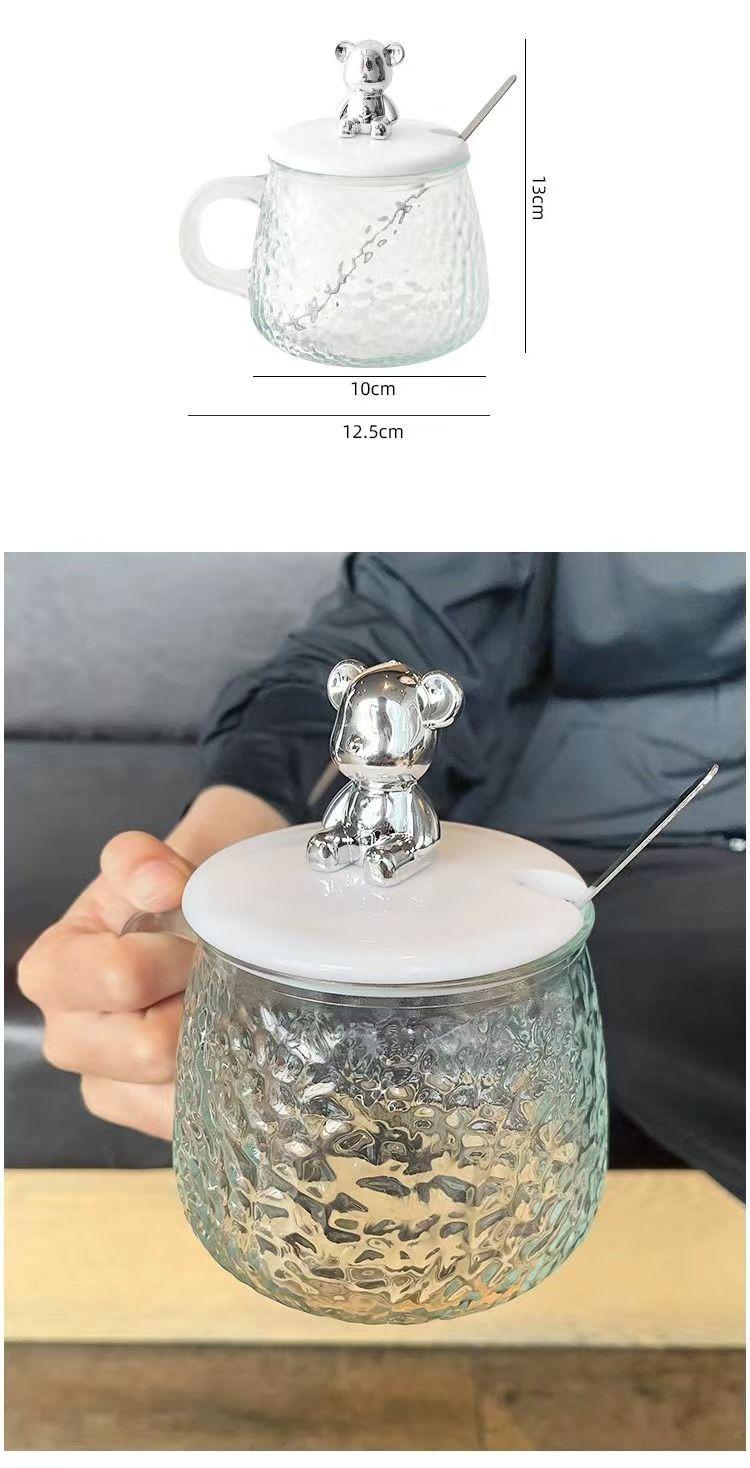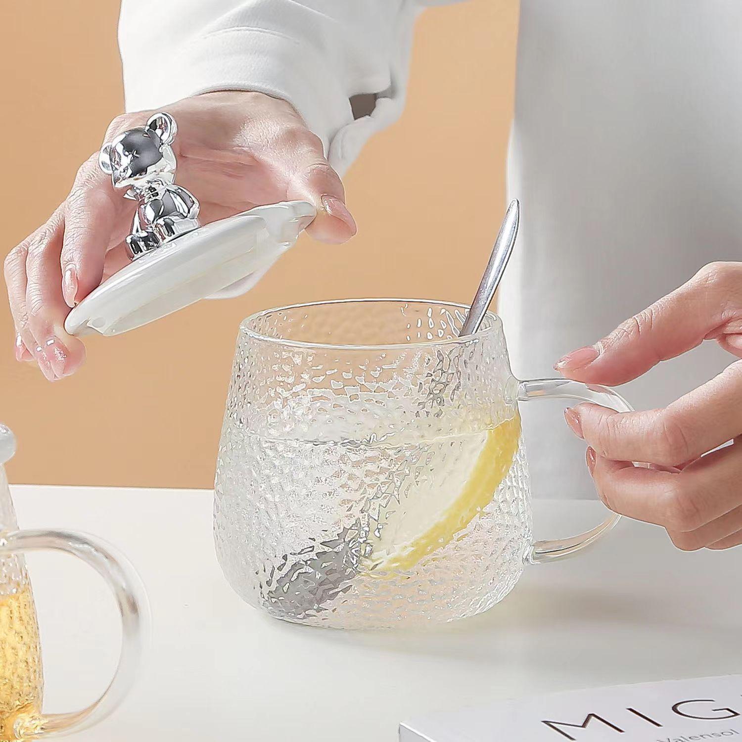 Taza de vidrio de alto valor de color con asa y tapa, taza de agua para oficina, hogar, taza de café, Internet Celebrity Hammer Bear Cup