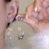 Pendientes asimétricos con borlas de diamantes de imitación y mariposa, diseño de nicho dulce, pendientes de orejas de elfo exquisitos y avanzados.