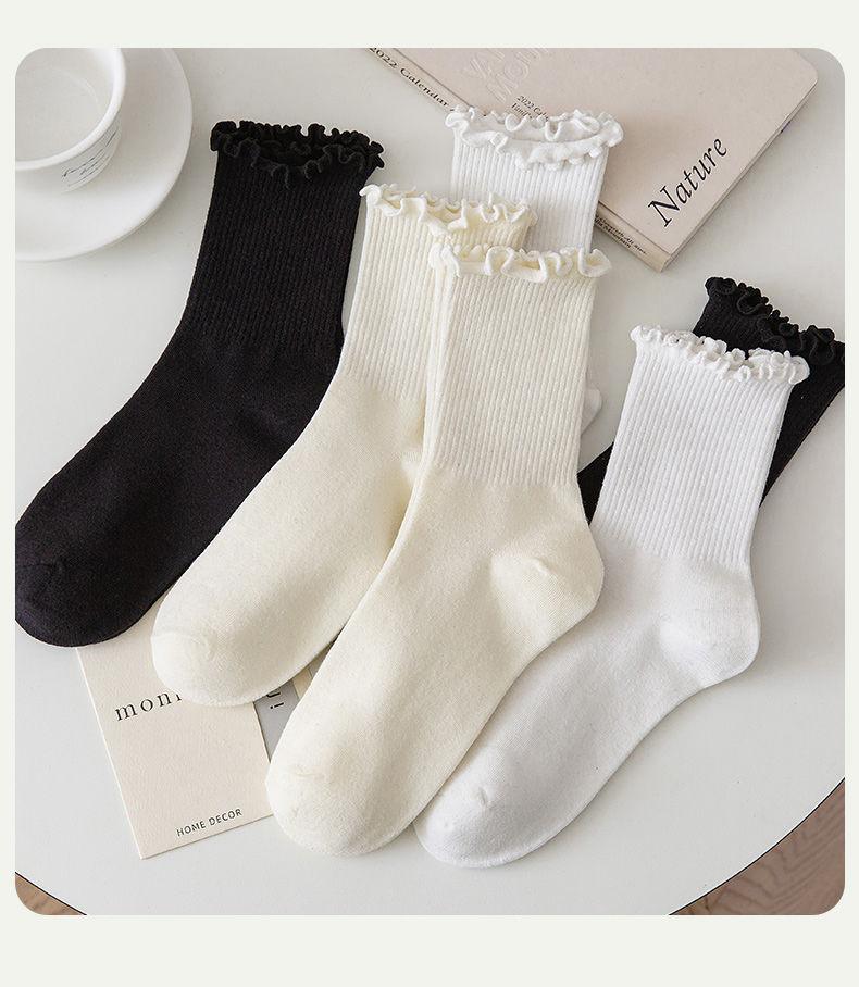 Compra Calcetines de encaje blanco para mujer, hasta media pantorrilla, absorbentes del sudor, desodorantes, con orejas de madera, para verano, negros, japoneses, combinables al por mayor en Joom.pro