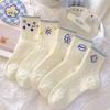 Calcetines de encaje blanco para mujer, hasta media pantorrilla, absorbentes del sudor, desodorantes, con orejas de madera, para verano, negros, japoneses, combinables