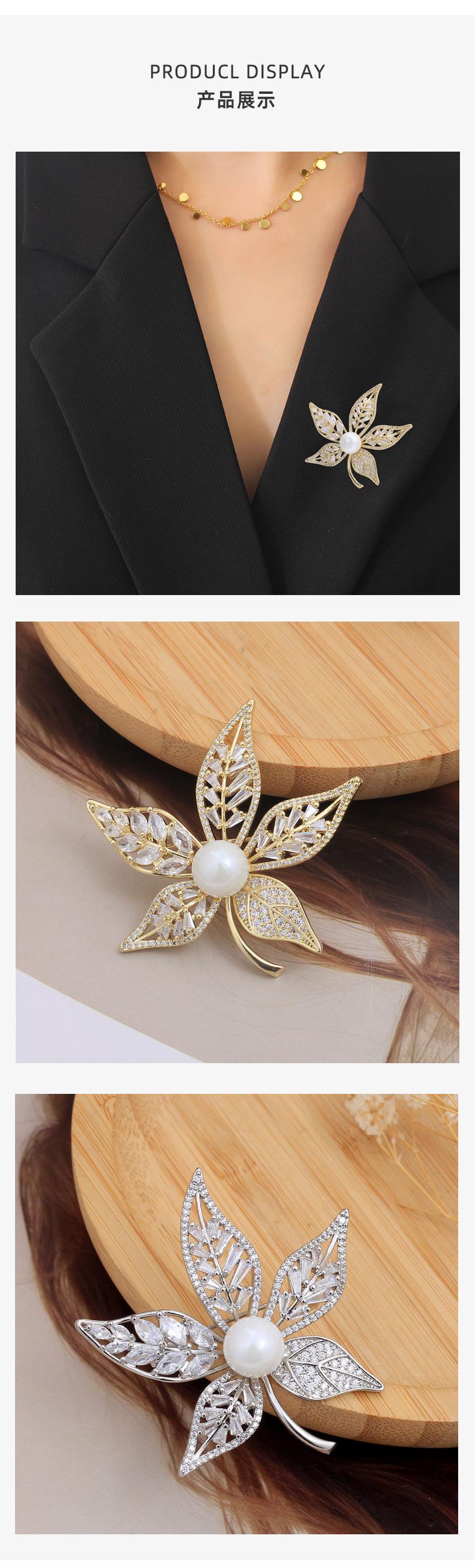 Broche de Moda Estilo Commuter para Mujer, Pin Floral de Hoja de Circonita de Nicho, Accesorio para Blazer con Incrustaciones de Perla, Lujo Ligero