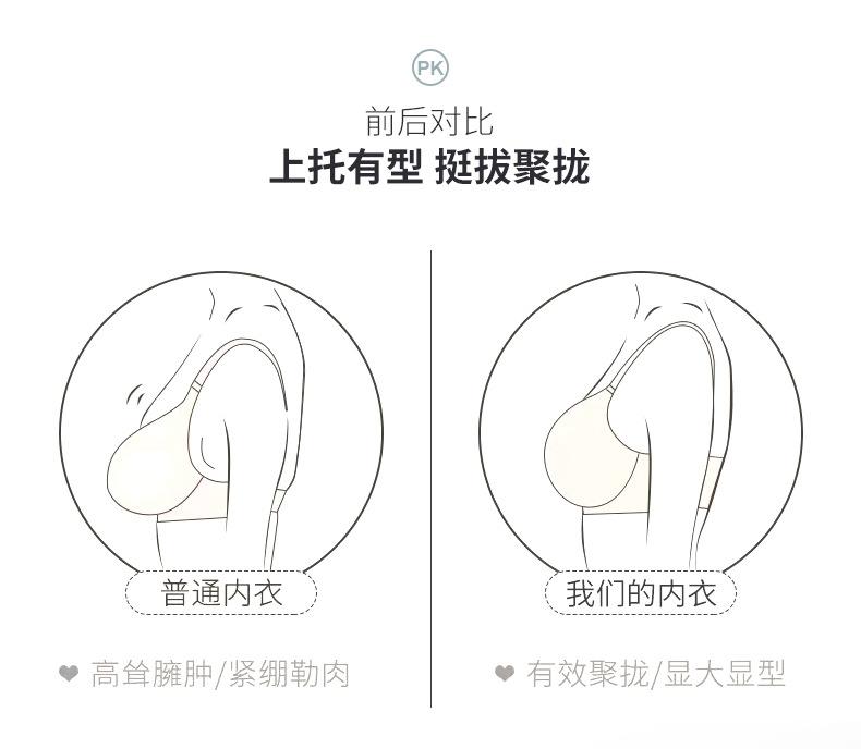 Gather, Traceless, Breathable, Upper support, Beauty back, Comfortable, Breast collection