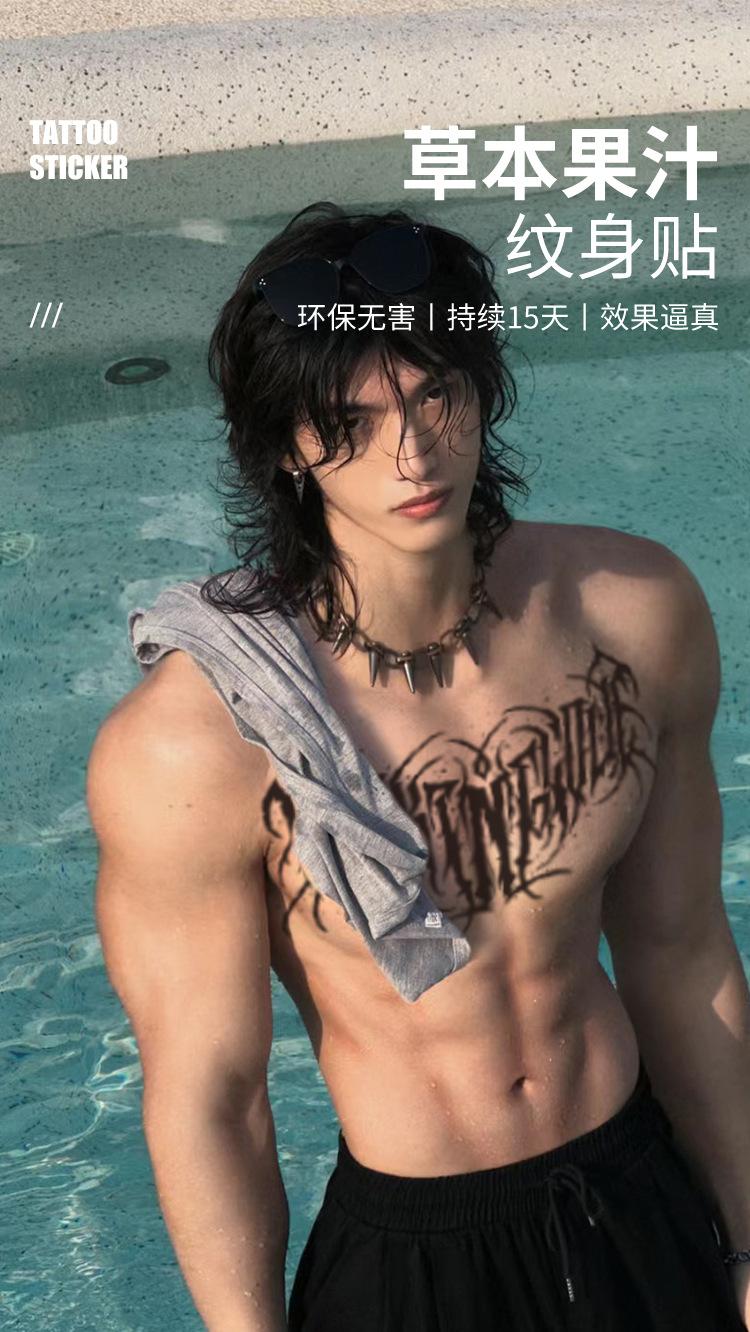 Nuevas pegatinas de tatuaje de flores en el pecho, pegatinas de hierbas, pegatinas de jugo, pegatinas de tatuaje de larga duración, impermeables, semipermanentes, pegatinas de tatuaje de imagen grande