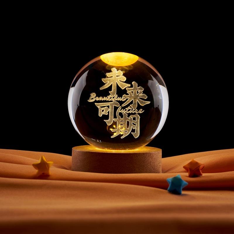 Bola de cristal 3D creativa y futura, luz nocturna luminosa tallada, regalo para compañeros de clase y profesores.