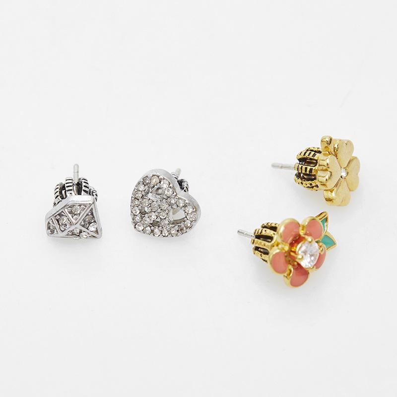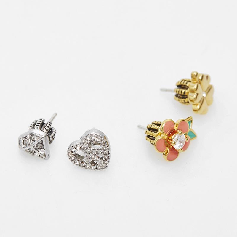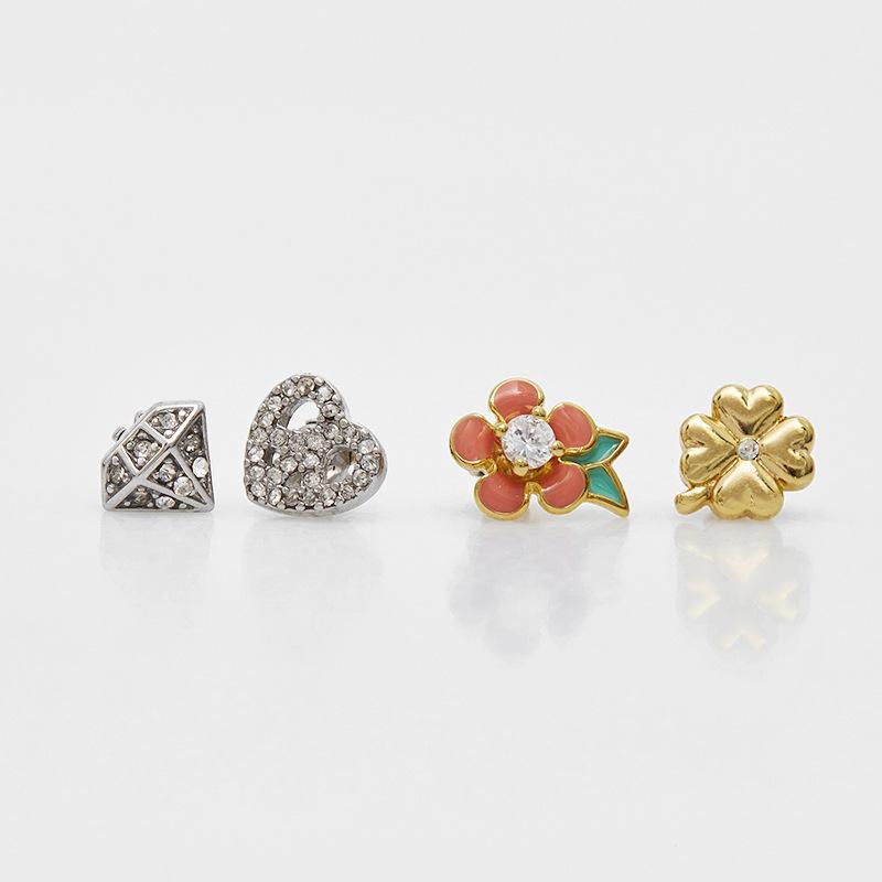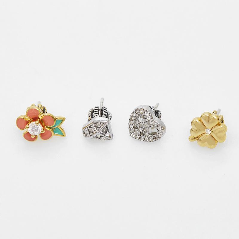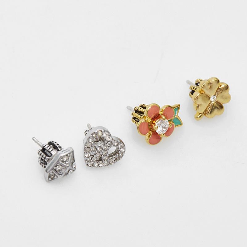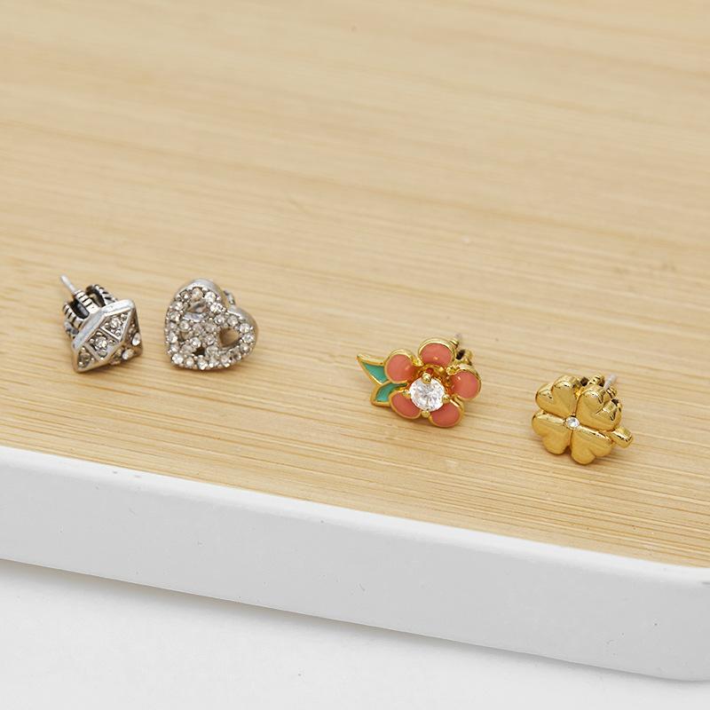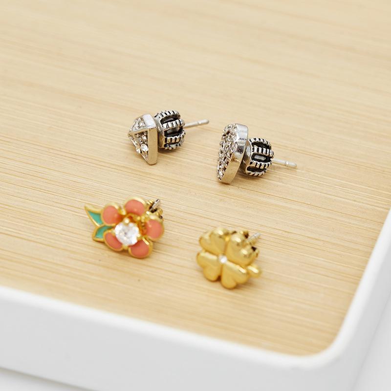 Pendientes pequeños sencillos de cuatro piezas de estilo coreano, modernos y combinables con flores rojas y trébol de cuatro hojas, pendientes estándar y de amor para mujer.