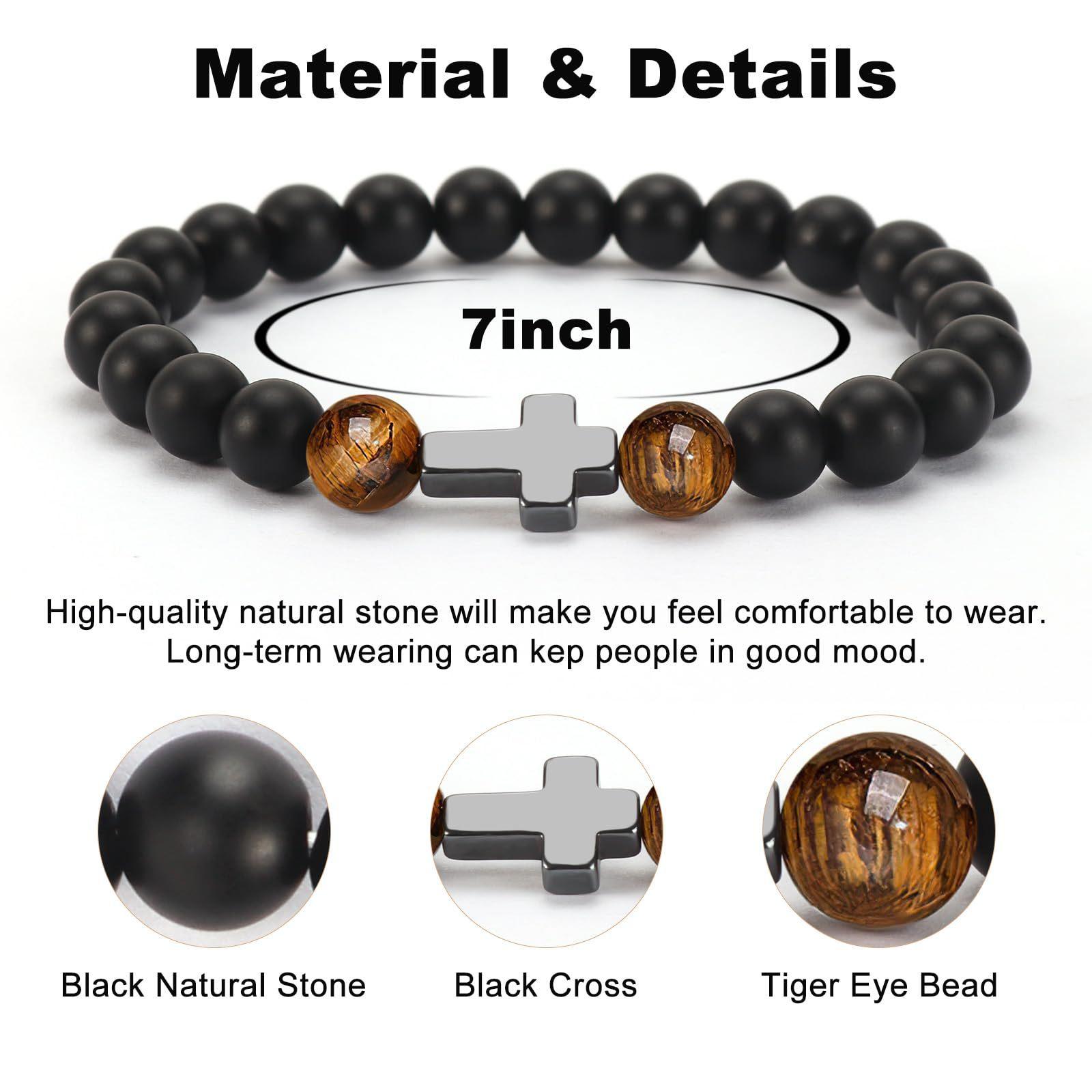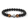 Pulsera de Cuentas Esmeriladas Negras Explosiones de Amazon Ojo de Tigre Imán Pequeño Colgante de Cruz Pulsera de Cruz de Obsidiana