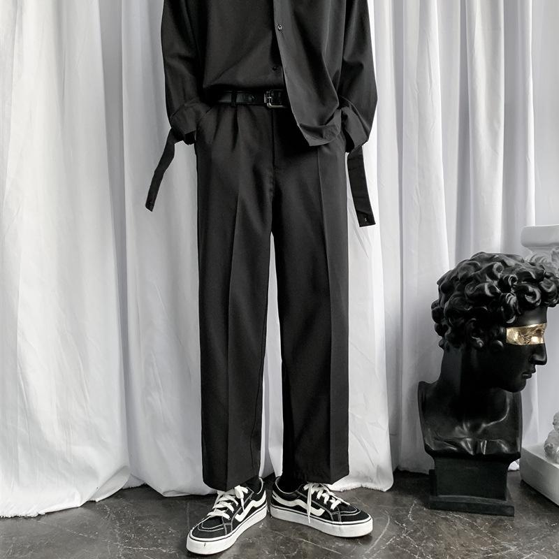 Pantalones anchos y rectos para hombre, estilo coreano, de moda, de corte nueve, para otoño