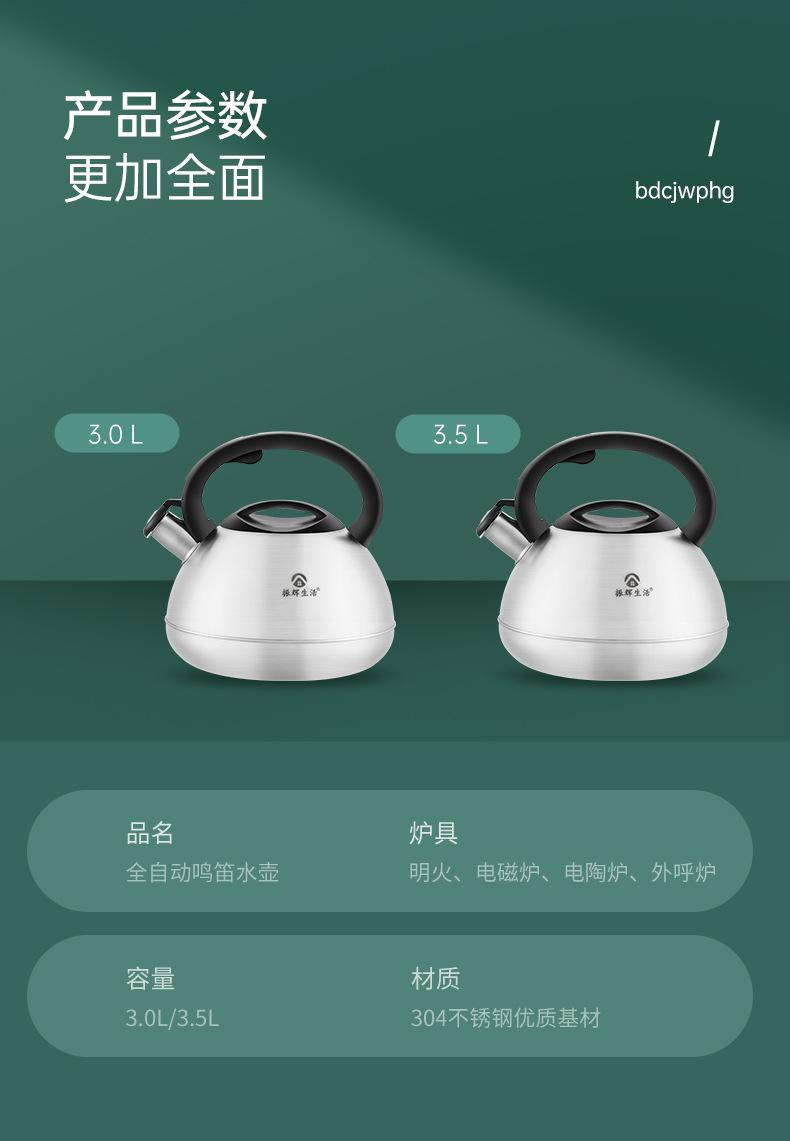 Hervidor de agua doméstico de acero inoxidable 304 de gran capacidad para cocina de inducción a gas, hervidor universal con silbato.