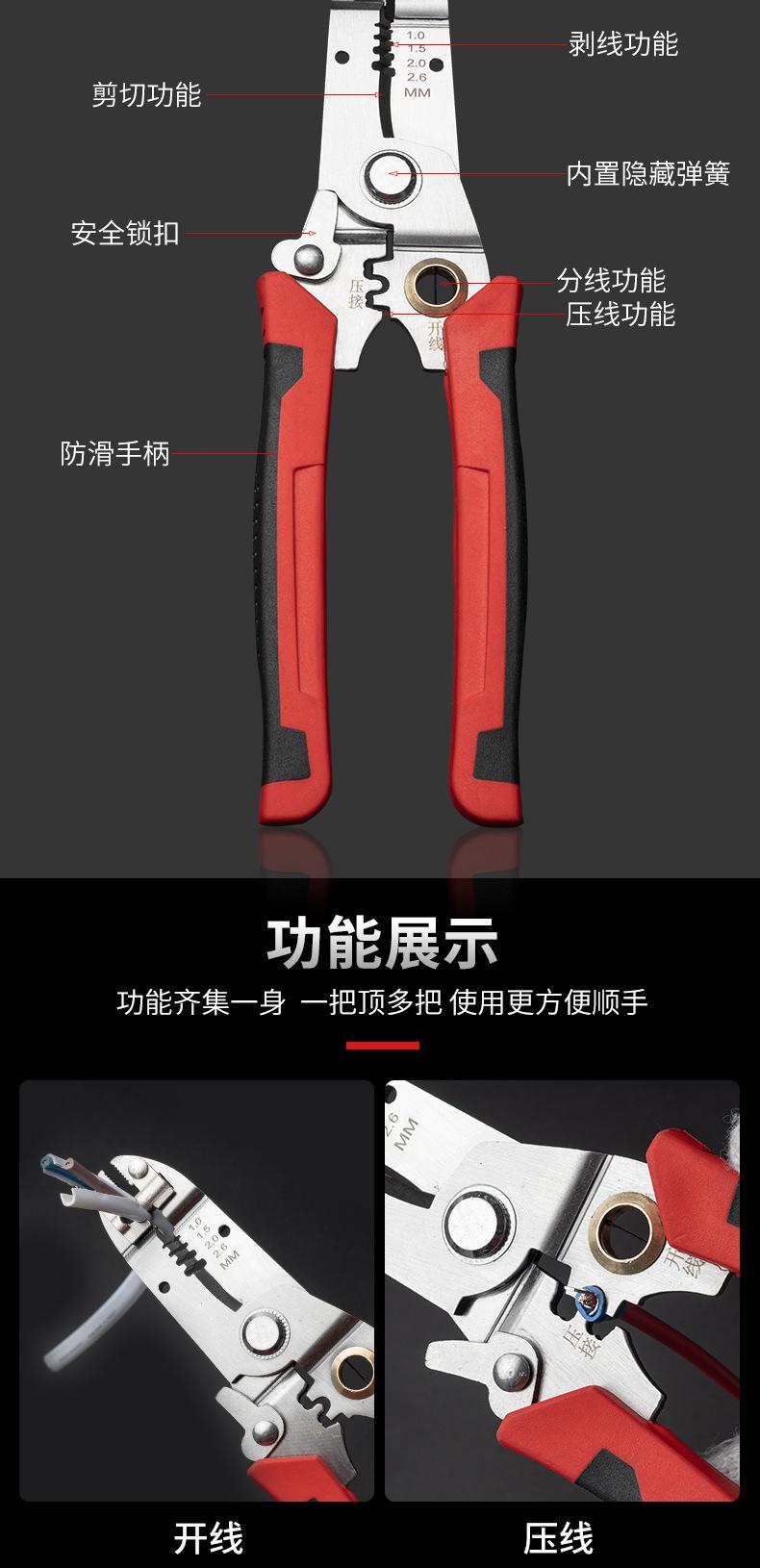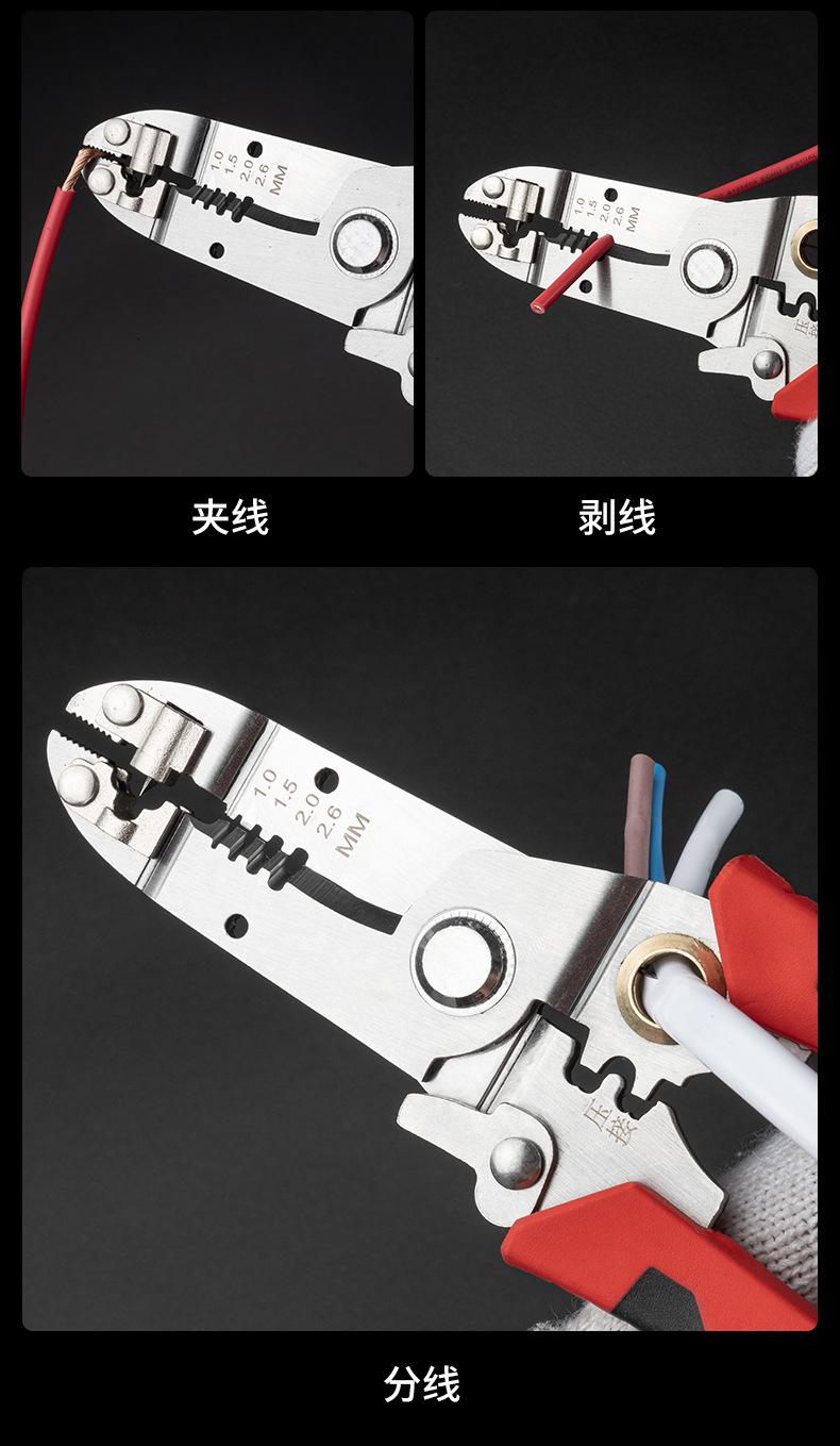 Pelacables multifunción de acero inoxidable, herramienta para electricistas, alicates para crimpar cables.