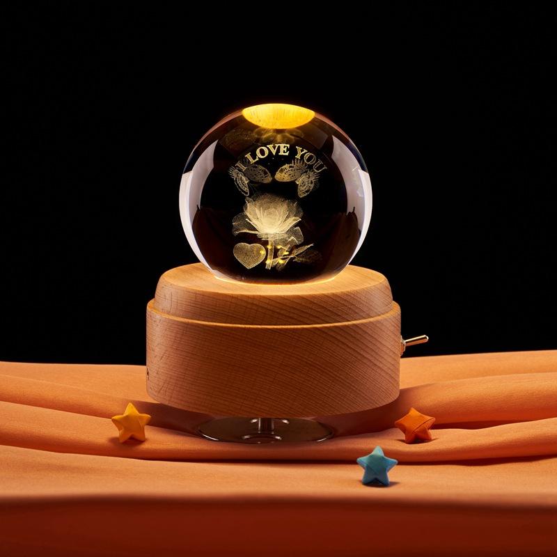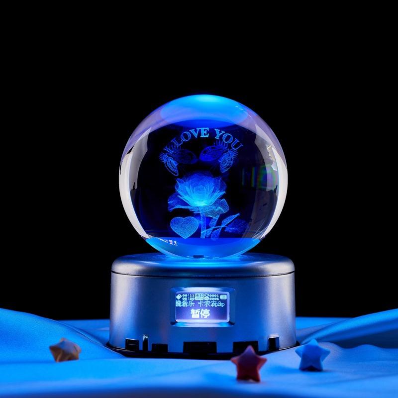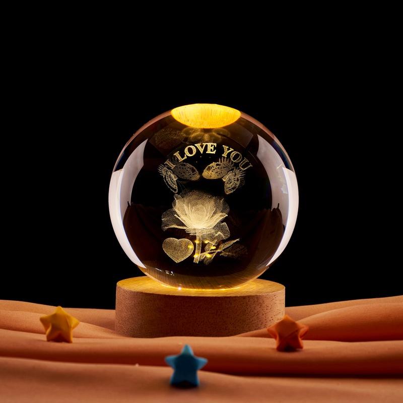 Bola de cristal con grabado láser tridimensional en 3D de rosas al por mayor transfronterizas para dormitorio, mesita de noche, luz nocturna, adornos
