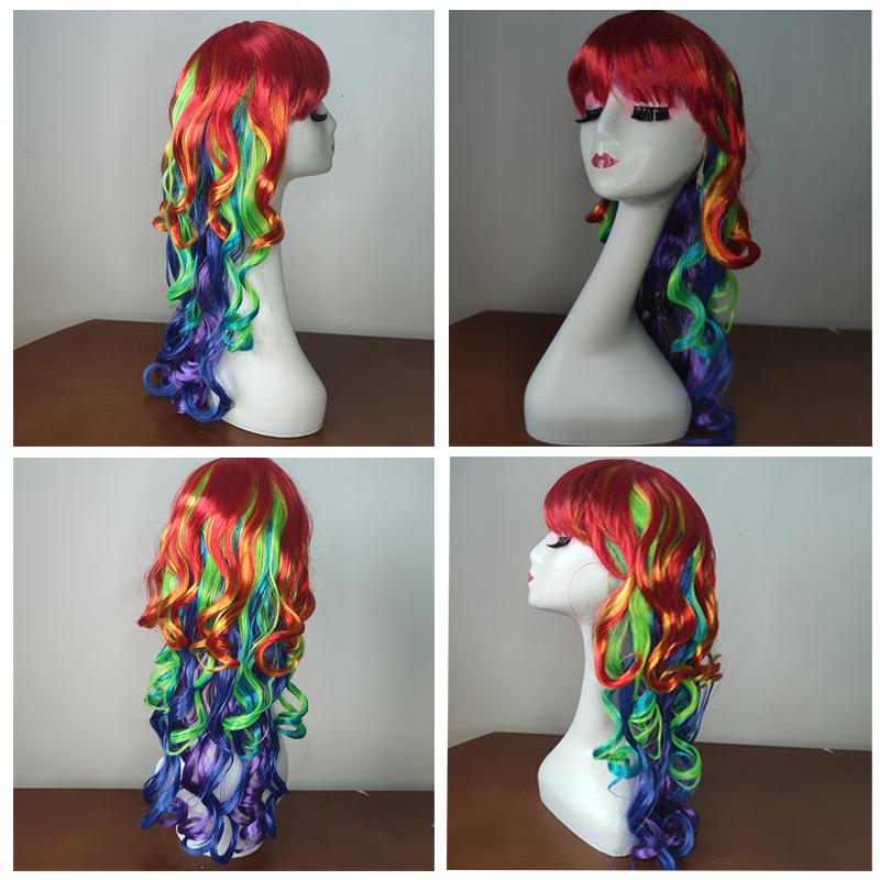 Peluca Cosplay de Cabello Largo Rizado Colorido para Mujer, Varios Estilos y Colores, Cabello Largo Realista con Degradado y Flequillo