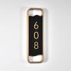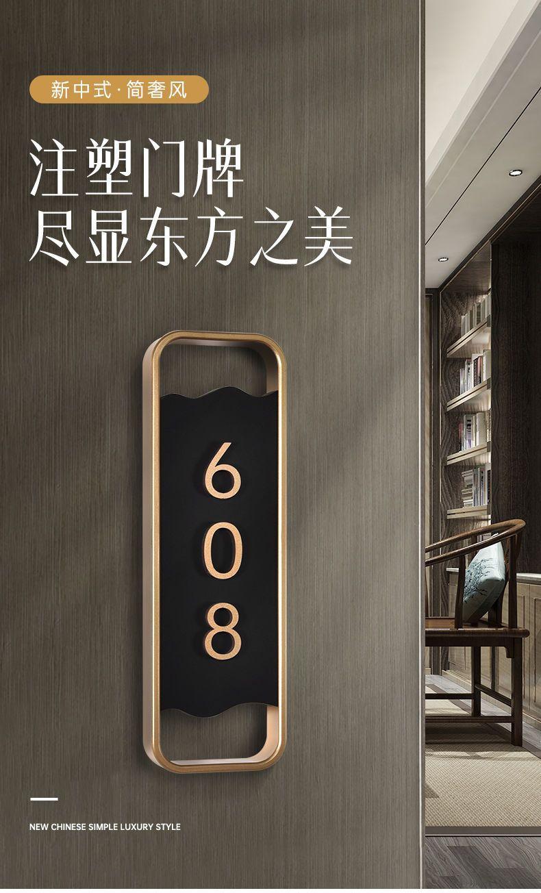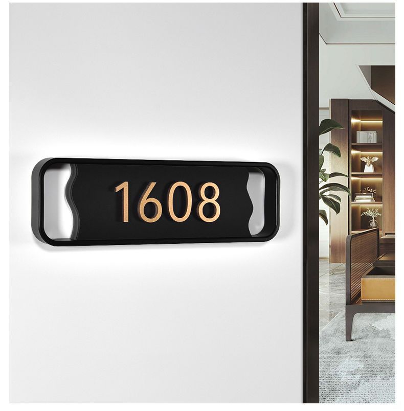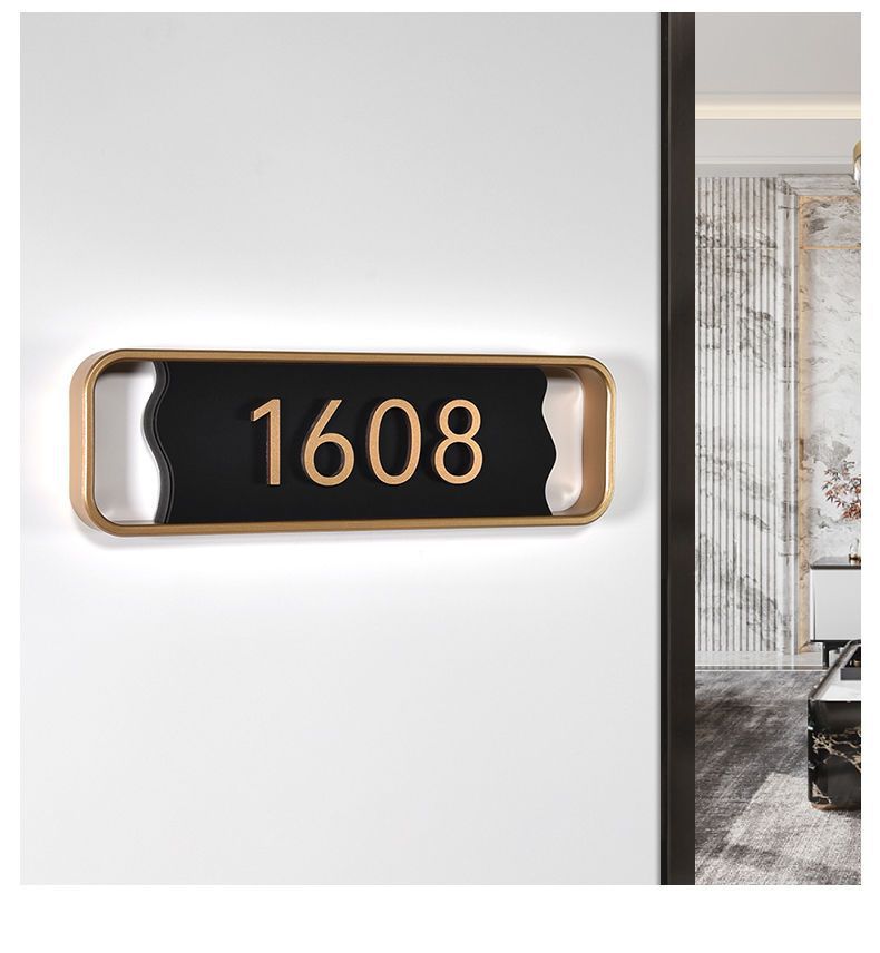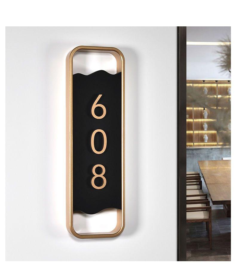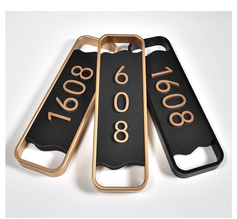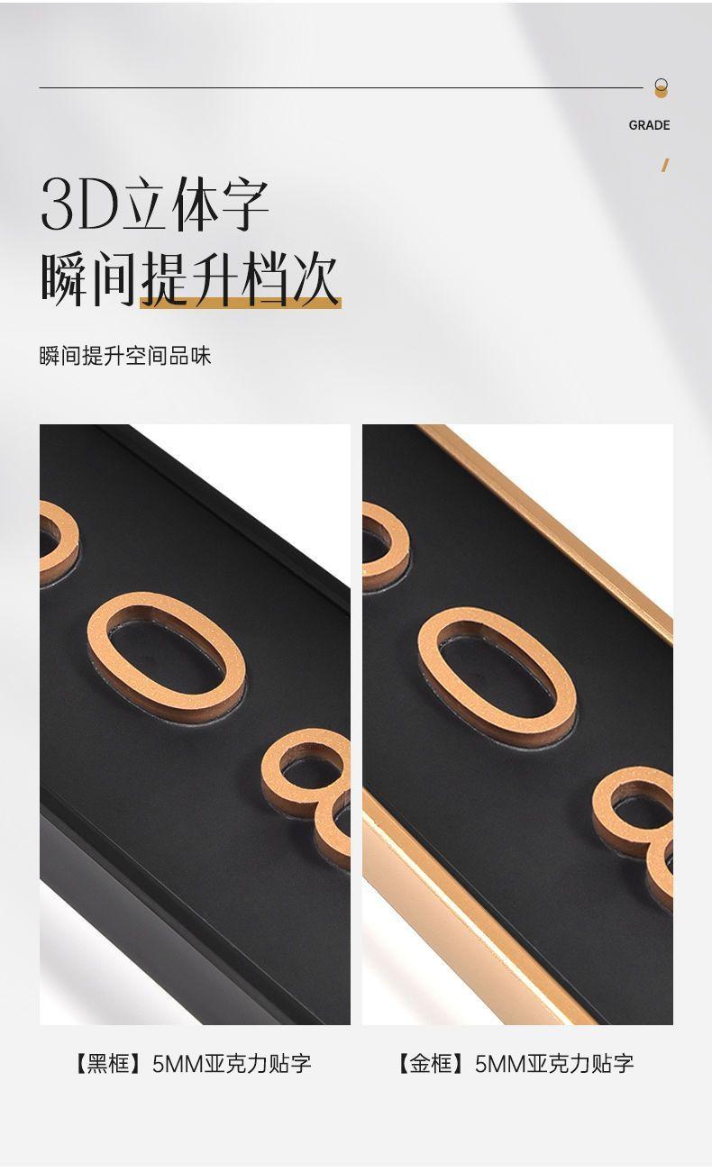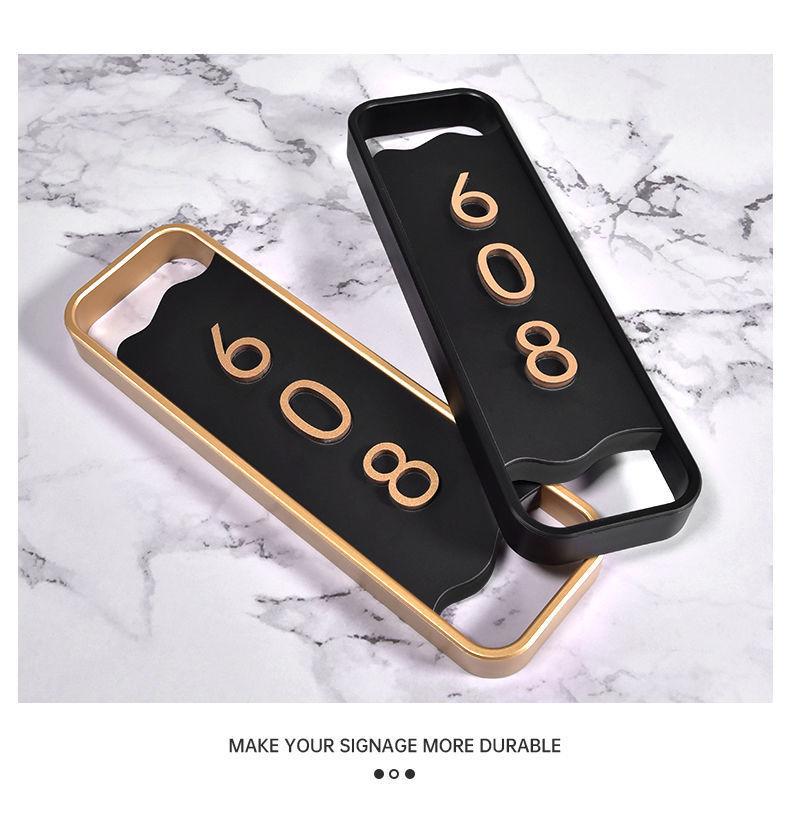 Número de puerta con marco dorado acrílico de bronce tridimensional, placa de matrícula digital 3D de alta calidad, producción de letreros creativos