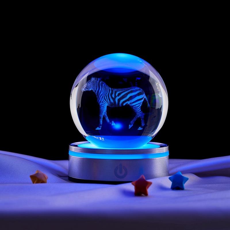 Bola de cristal con grabado láser tridimensional 3D de cebra, luz nocturna cálida, artesanías decorativas, adornos creativos, venta al por mayor transfronteriza