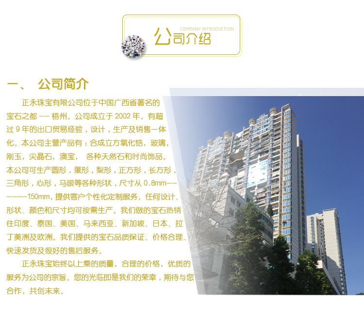 1) Zhengyong Jewelry Co., Ltd. es uno de los mayores fabricantes y proveedores de piedras preciosas de Wuzhou. La empresa se fundó en 1998 y cuenta con 20 años de experiencia profesional.Dedicada al procesamiento de piedras preciosas artificiales.