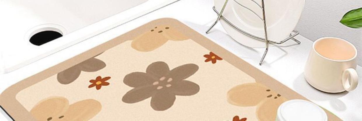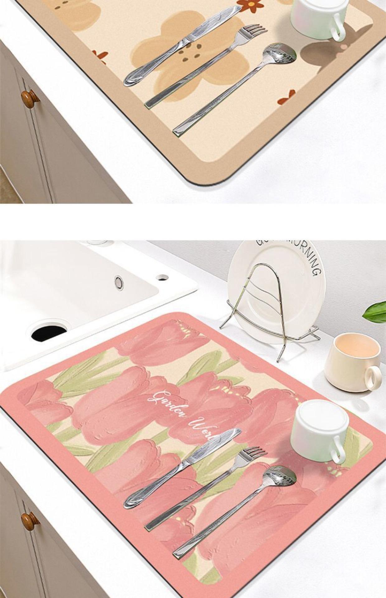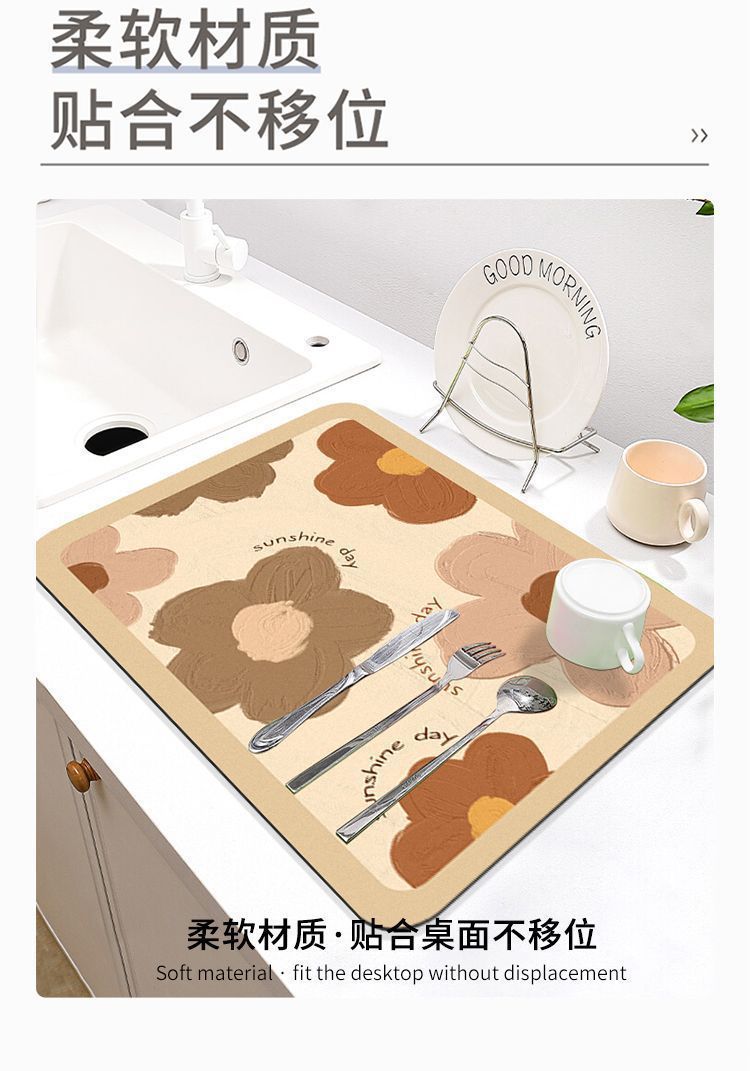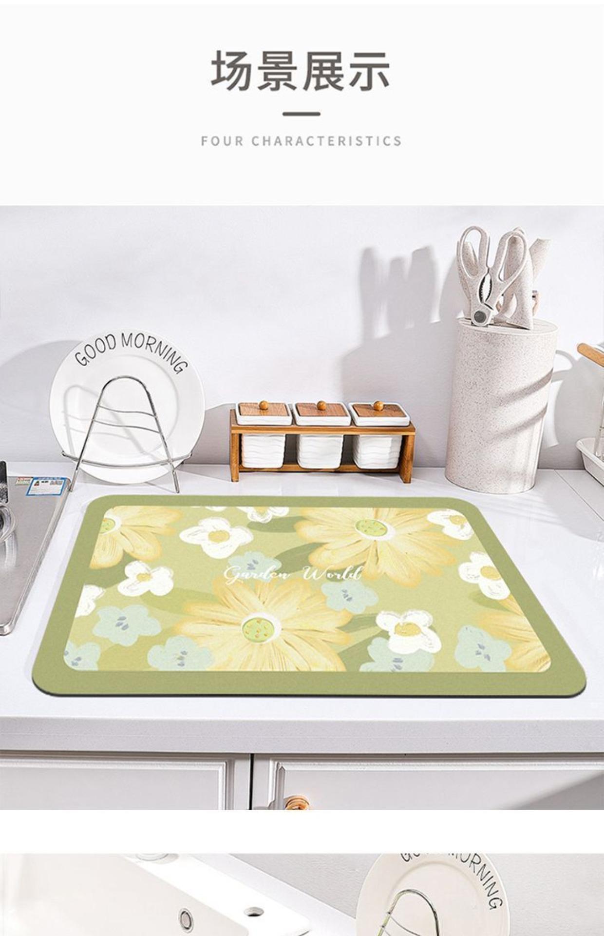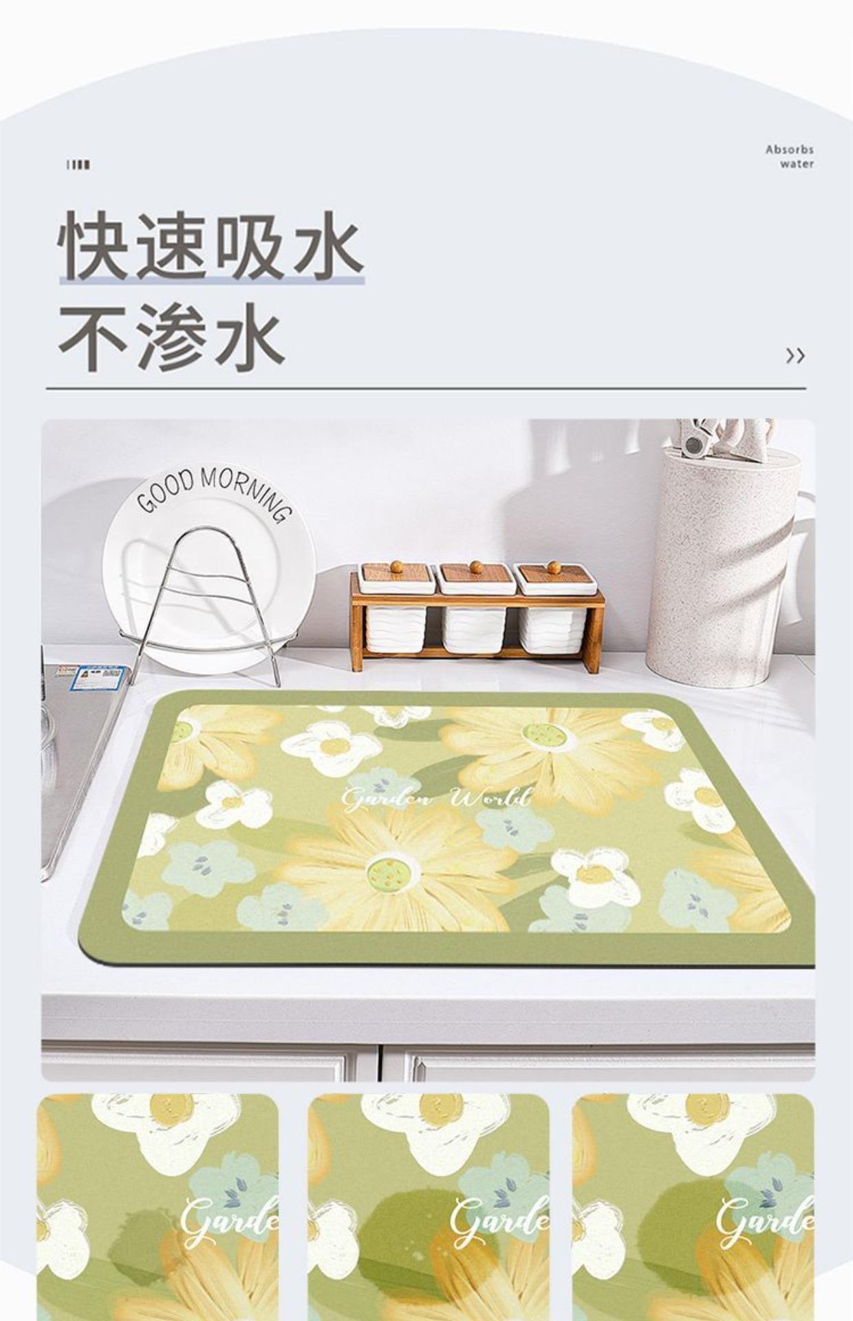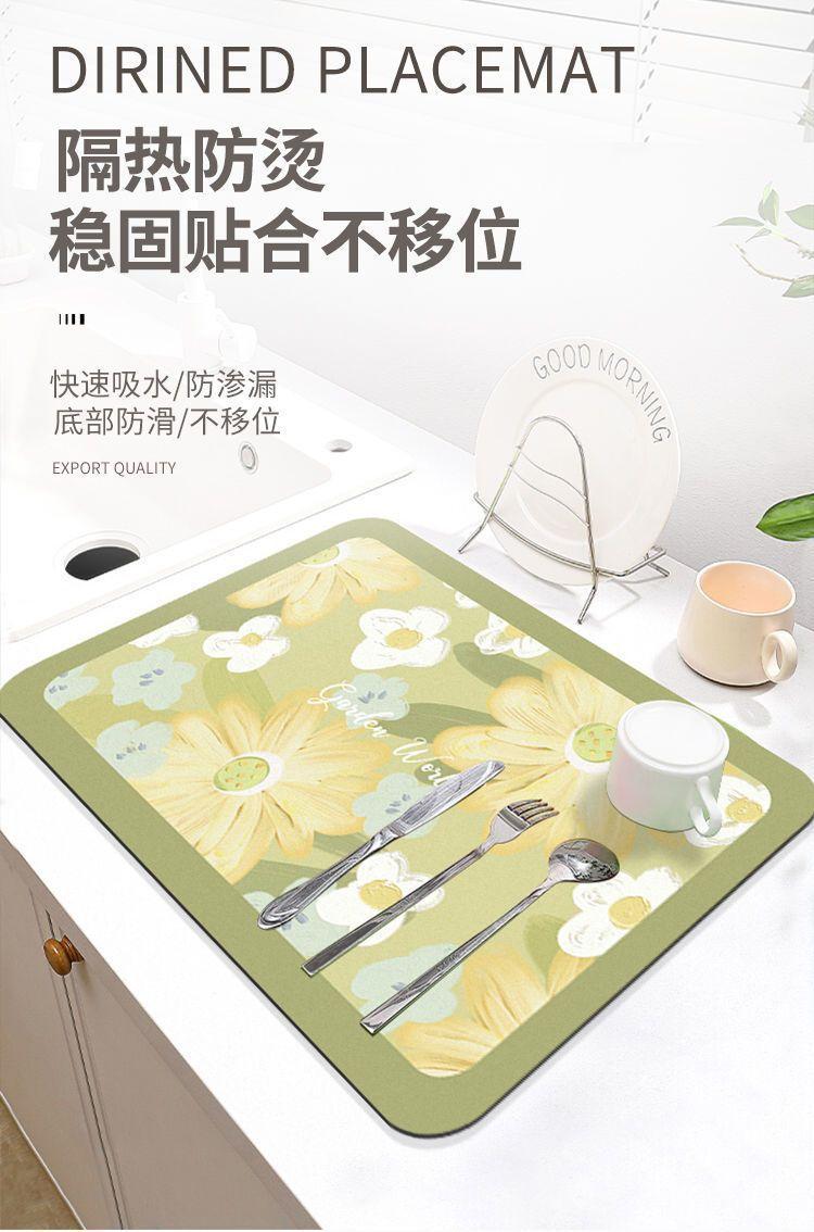 Esterilla de drenaje para cocina, pequeña y fresca, para encimeras y platos, con absorción de agua, secado rápido, con lodo de diatomeas, sin lavado, control de agua, aislante térmico.