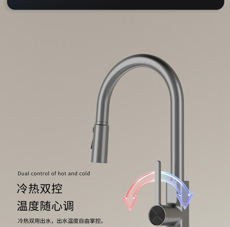 Grifo extraíble para fregadero de cocina de cobre, con agua fría y caliente, grifo multifuncional para fregadero doméstico a prueba de salpicaduras