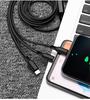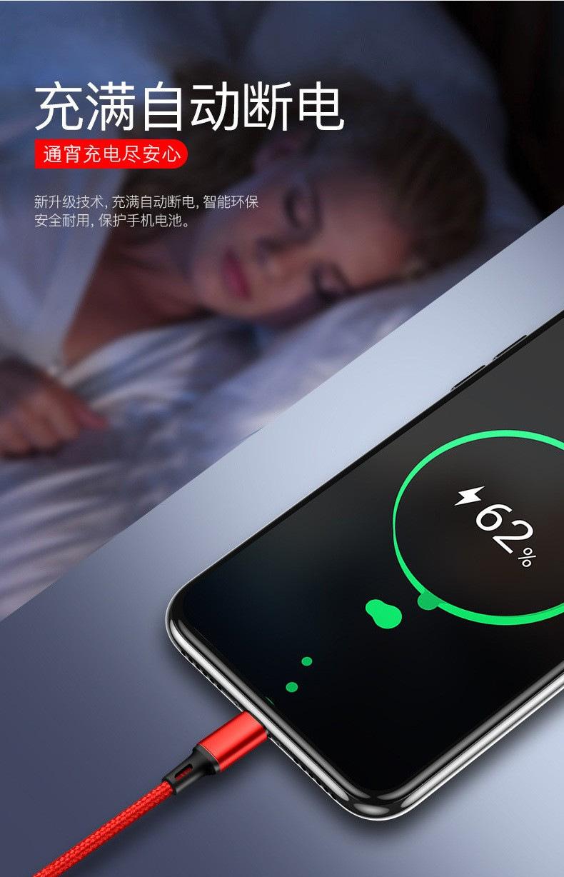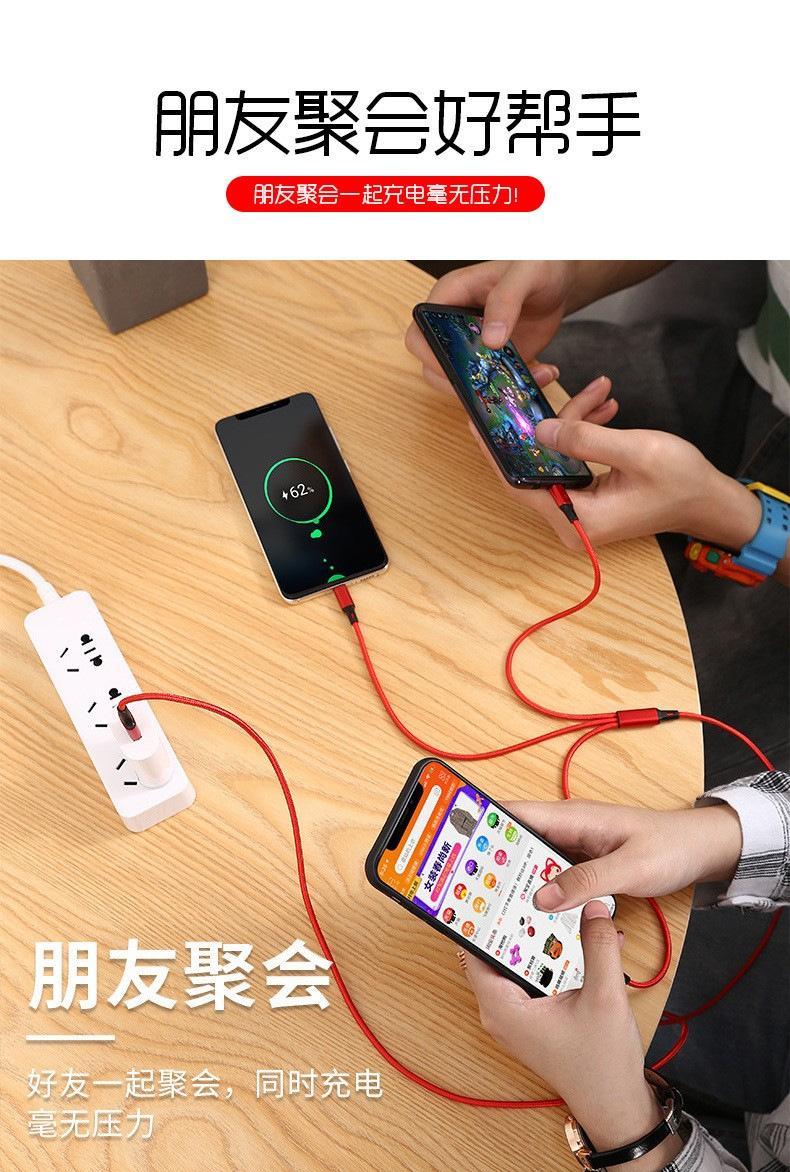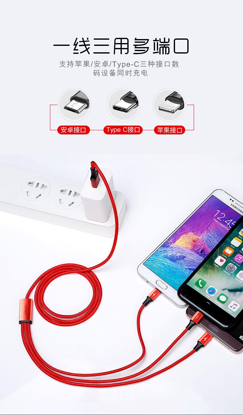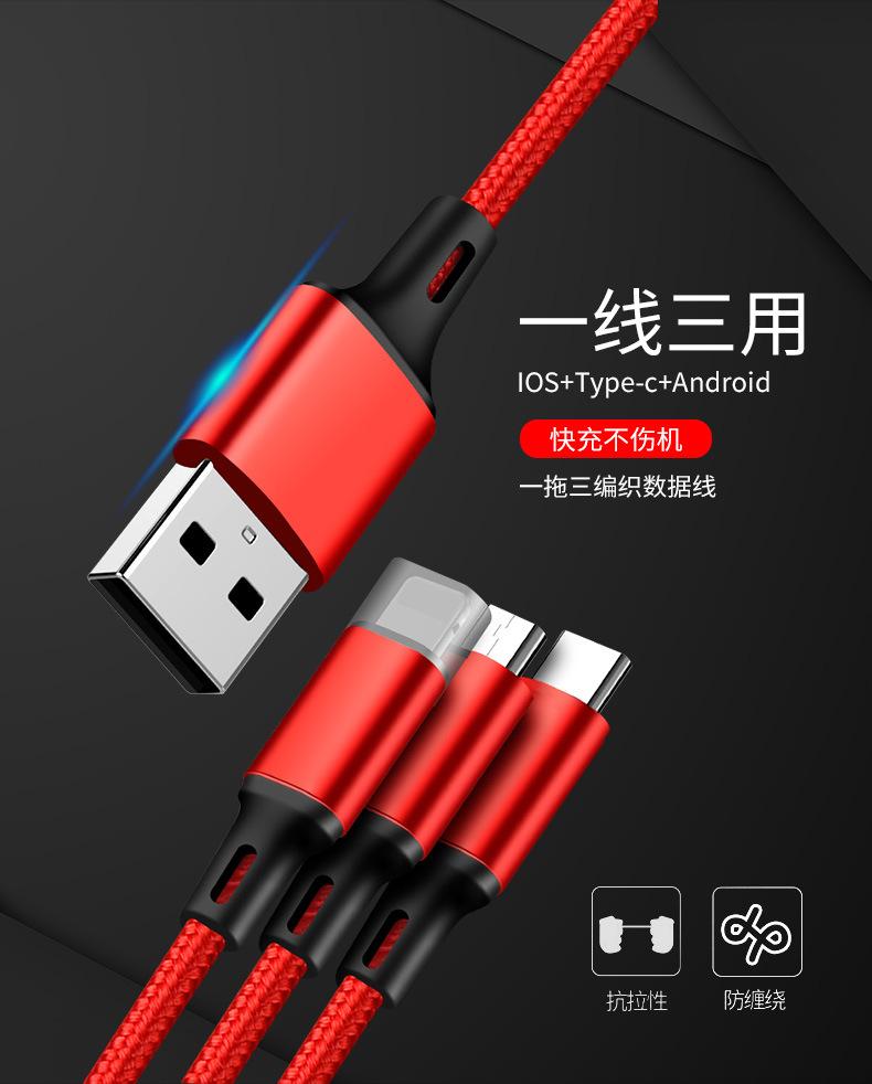 【Características destacadas del producto】: Diseño de carga tres en uno de una sola línea, resistente al estiramiento, antienredos, goteo inteligente, carga rápida de hasta 2,4 A
