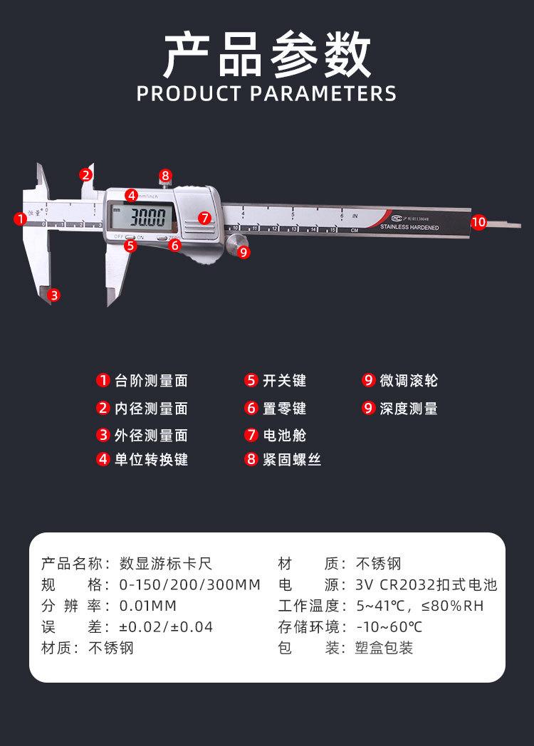 Compra Calibrador vernier con pantalla digital electrónica de acero inoxidable de grado industrial de alta precisión constante al por mayor en Joom.pro