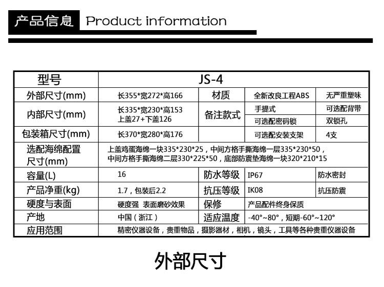Wandebao JS-4 caja vacía caja de herramientas de plástico portátil estuche de lujo para almacenamiento caja de seguridad a prueba de tres golpes impermeable a prueba de humedad