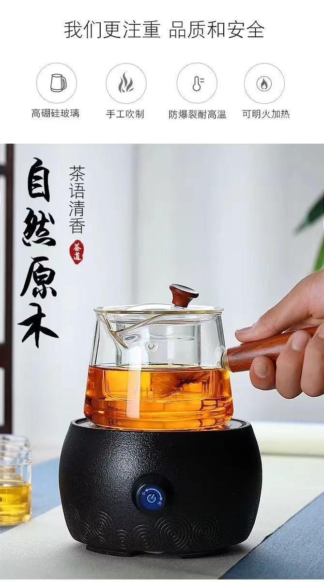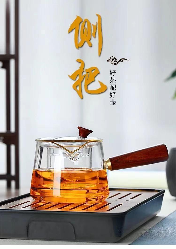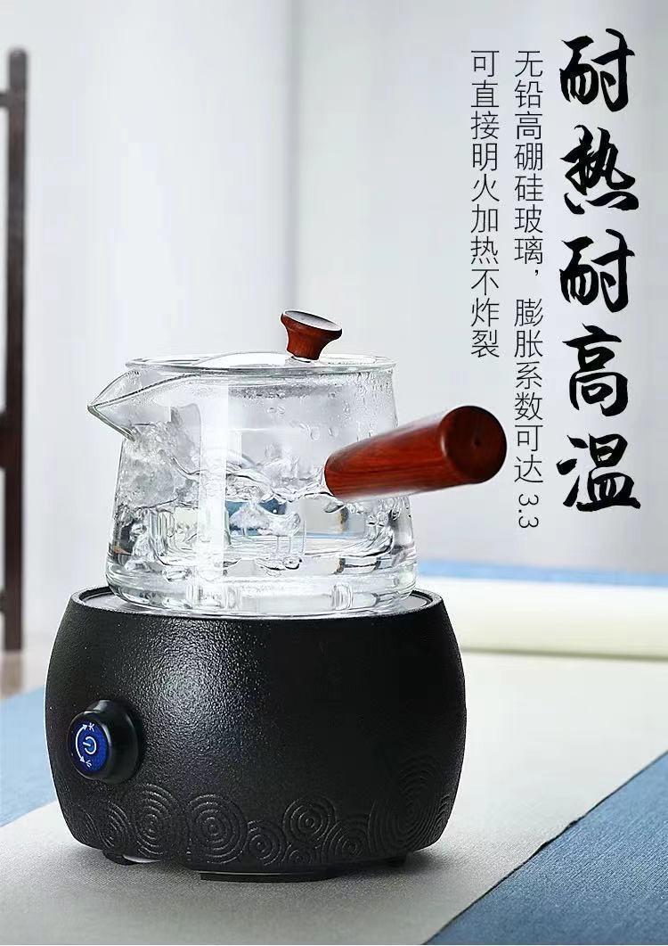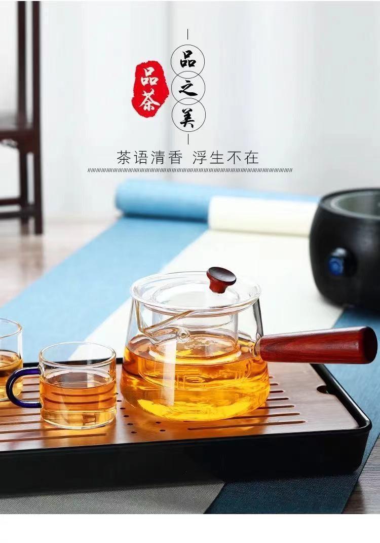 Tetera de té con asa lateral, tetera de vidrio, estufa de cerámica eléctrica, tetera resistente a altas temperaturas, mango de madera, filtro, juego de té de celebridades de Internet nuevo