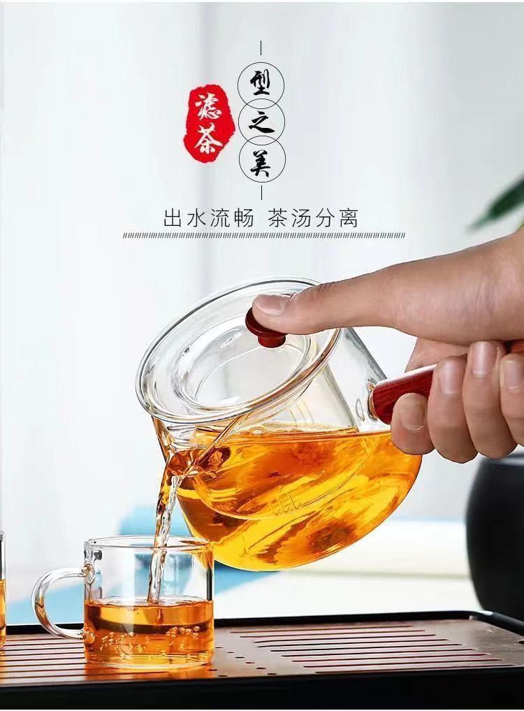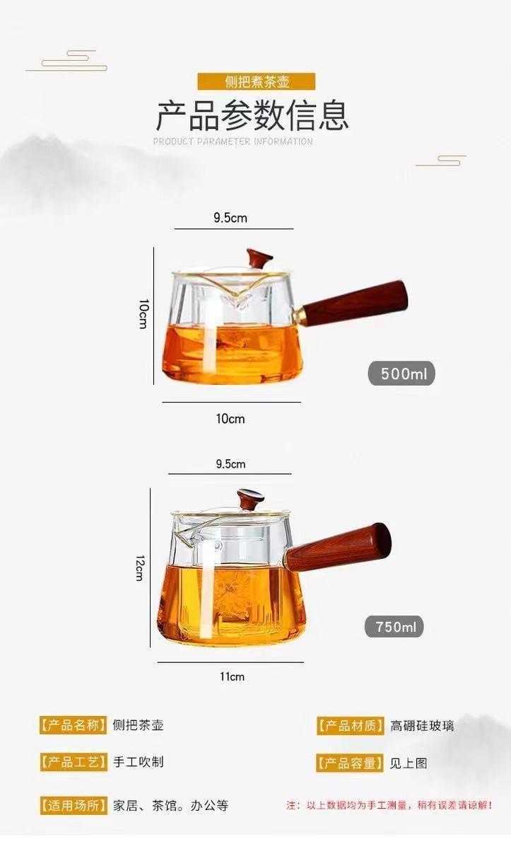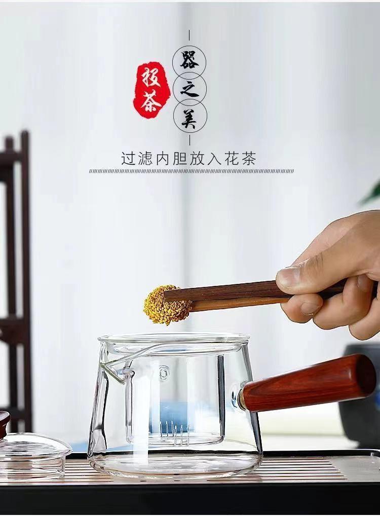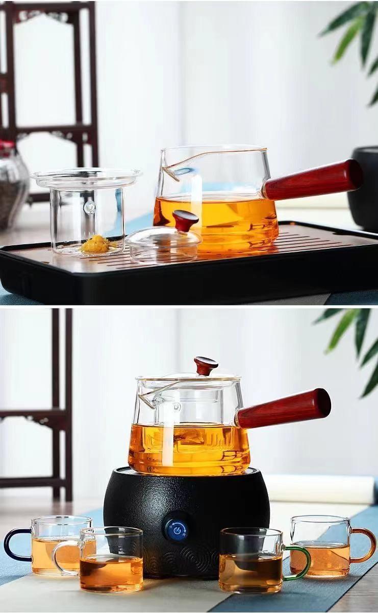 Tetera de té con asa lateral, tetera de vidrio, estufa de cerámica eléctrica, tetera resistente a altas temperaturas, mango de madera, filtro, juego de té de celebridades de Internet nuevo