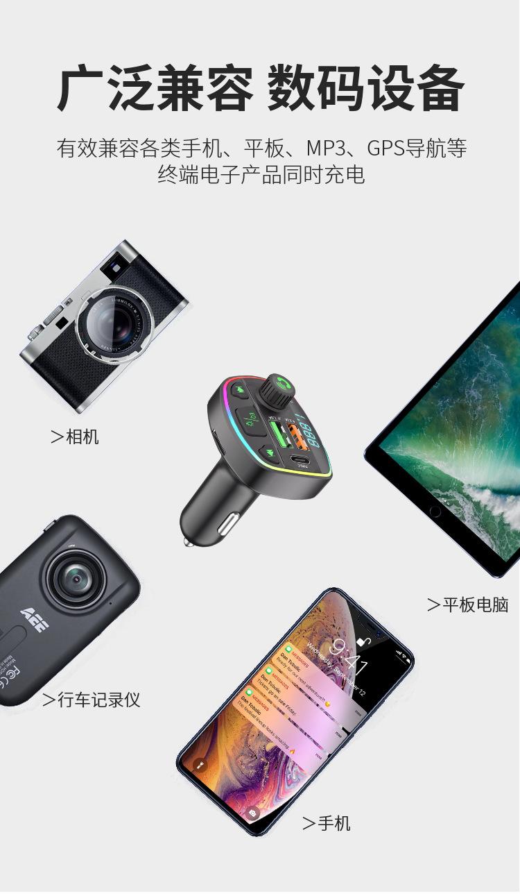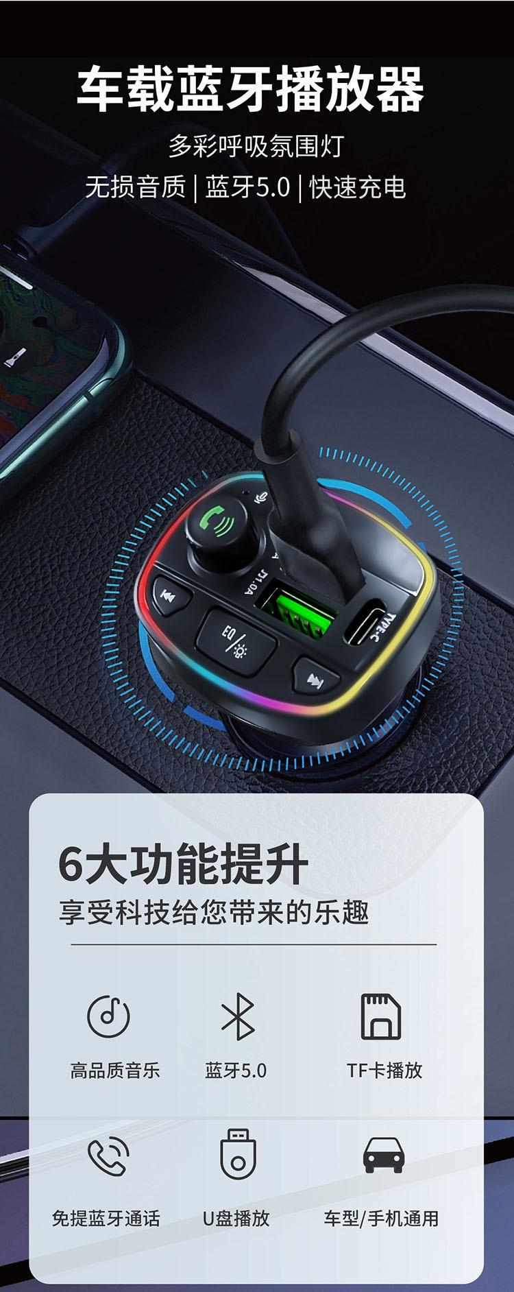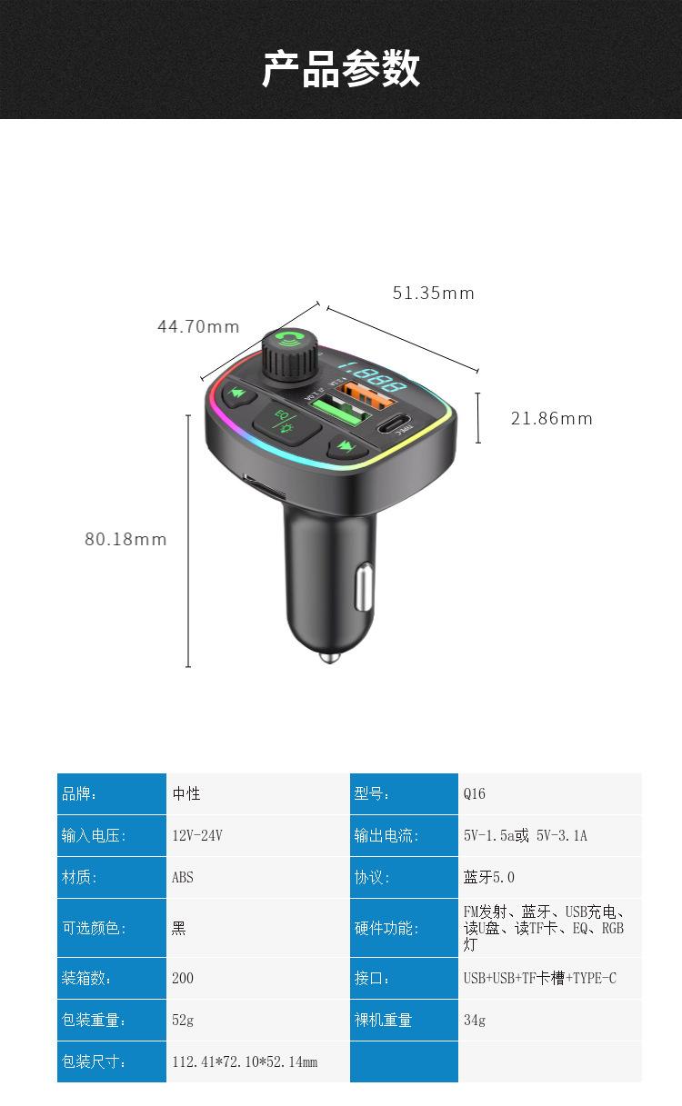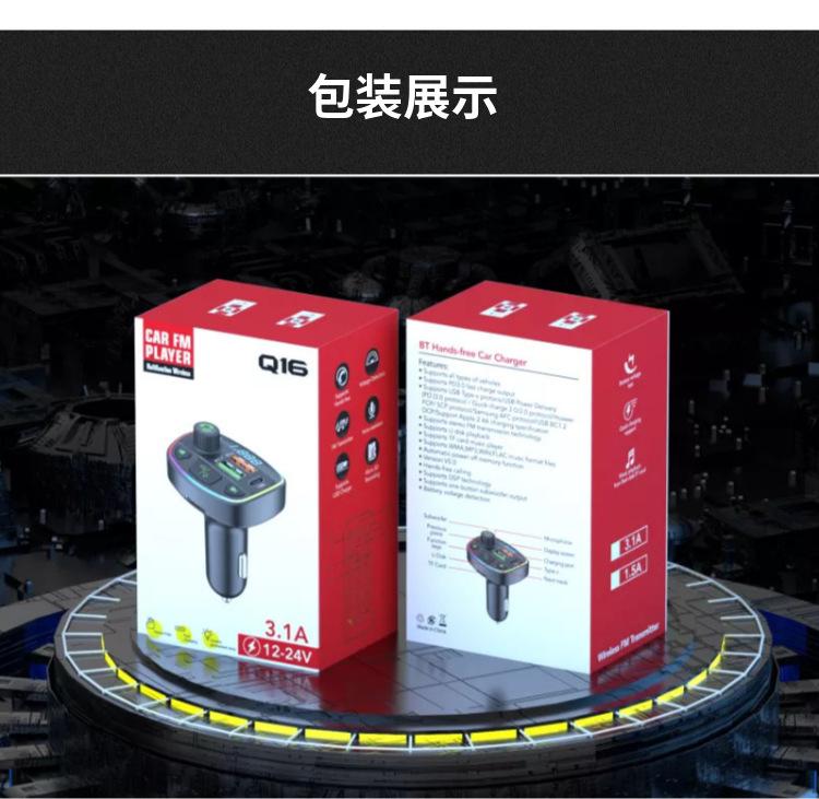 Cargador de coche Q16 transfronterizo Reproductor MP3 Bluetooth cargador de coche encendedor de cigarrillos pantalla digital cargador de teléfono móvil
