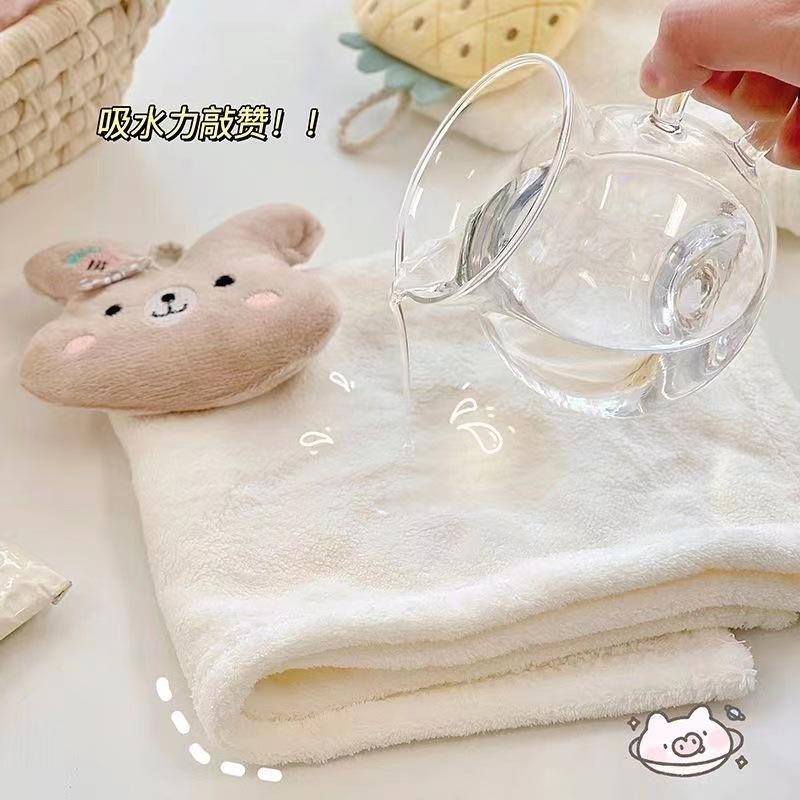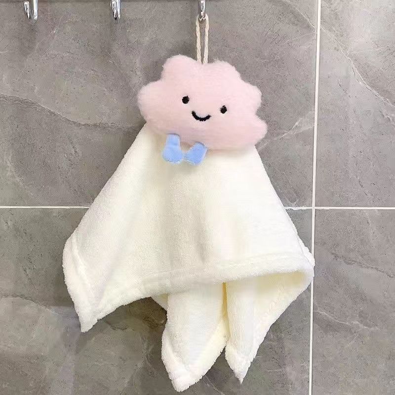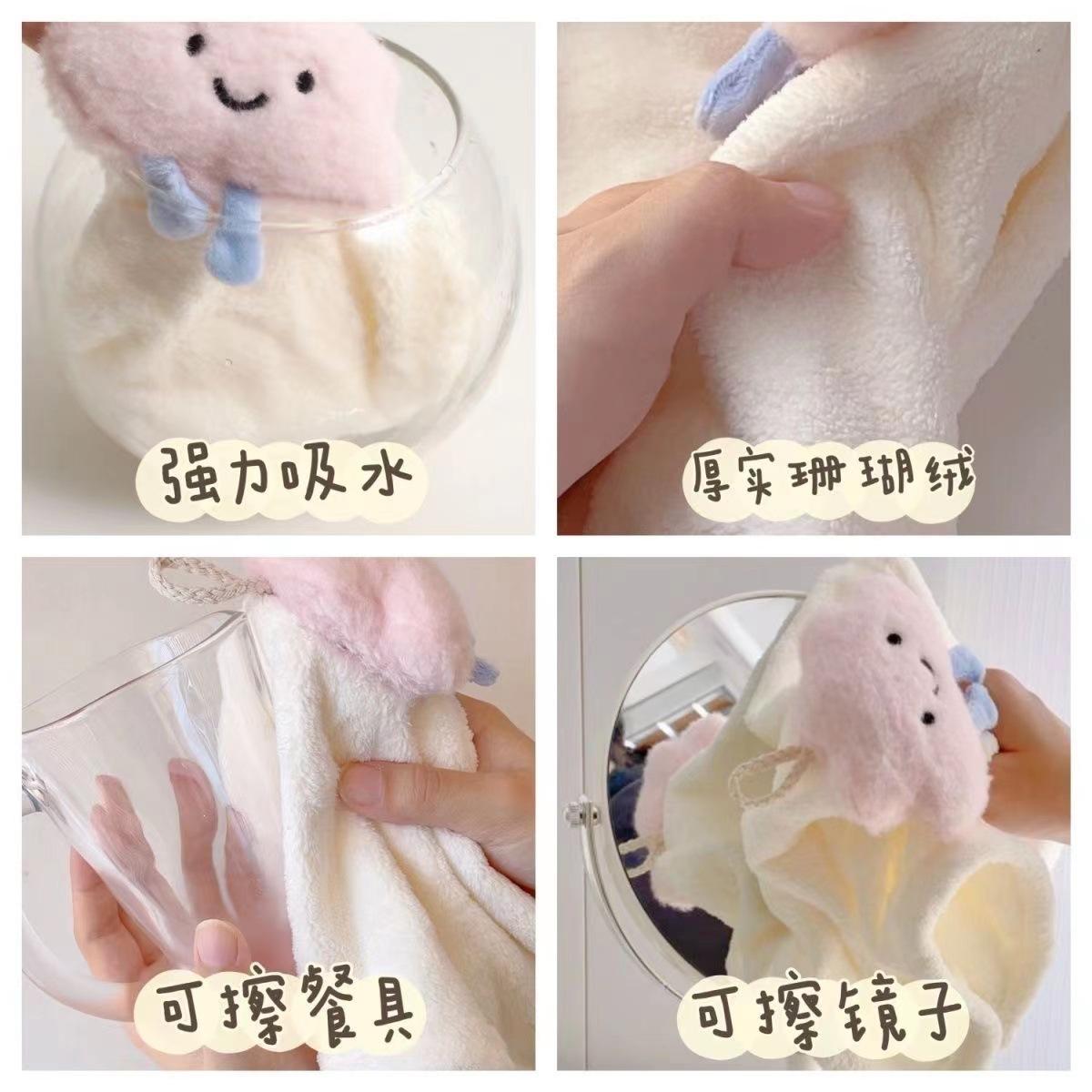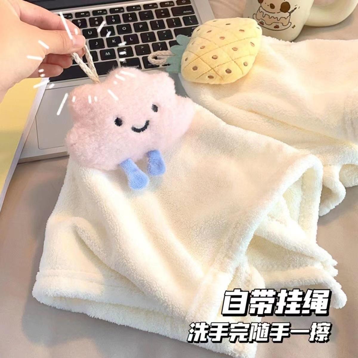 Bonita toalla de mano colgante de forro polar coral, absorbente, para cocina, baño, paño de limpieza, regalo para niños, toalla pequeña