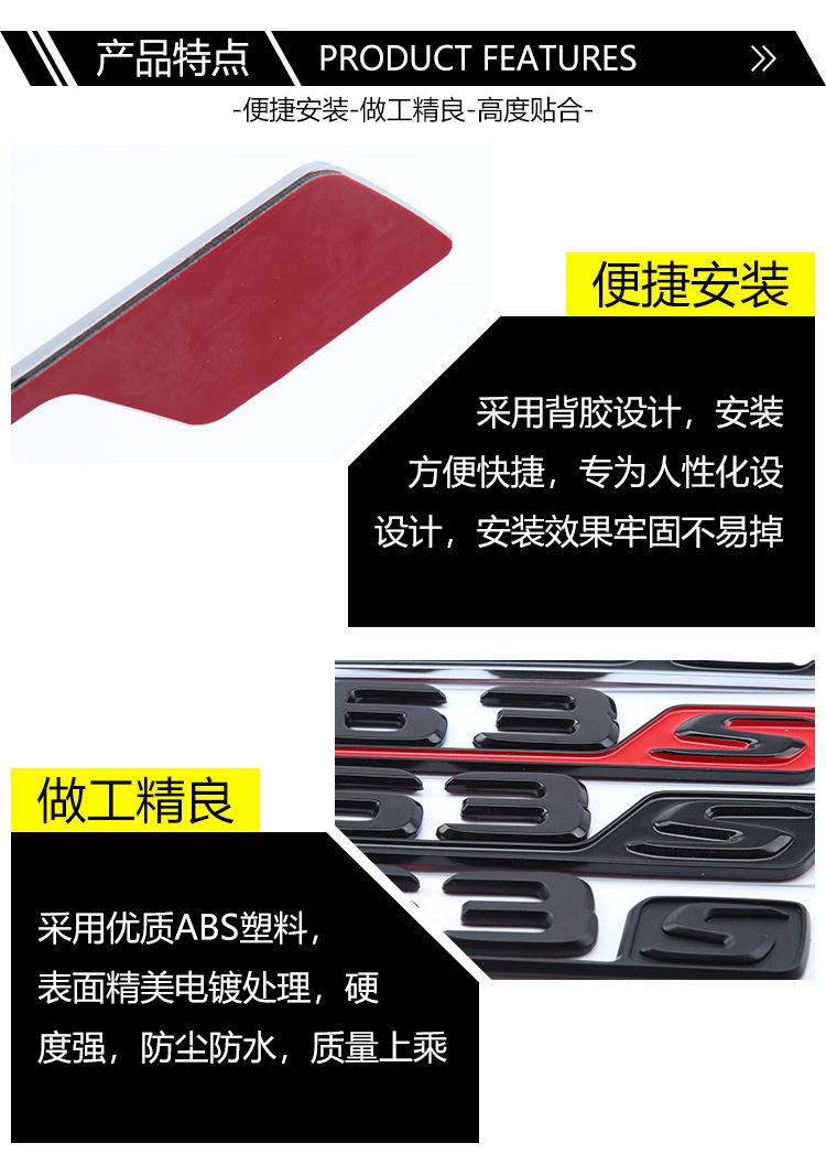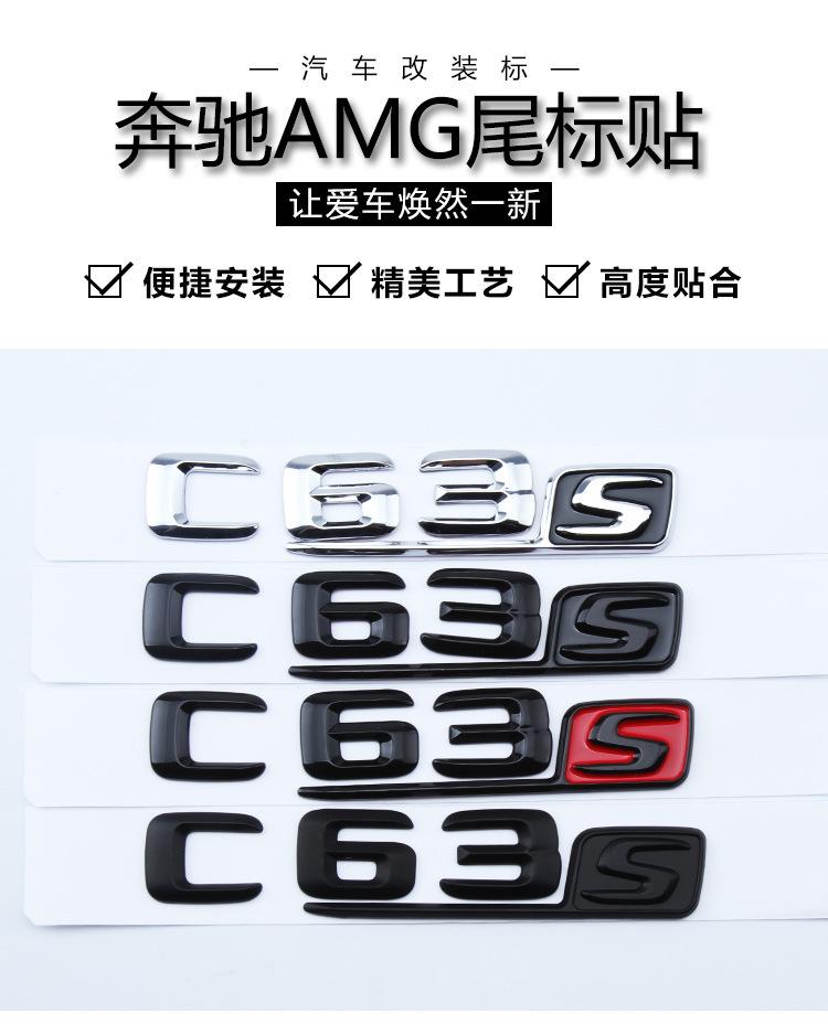 Aplicable a modificación de Mercedes-Benz Clase C Clase E Clase S GLC63S E63S GLA CLA AMG Fila de letras con logo de coche negro