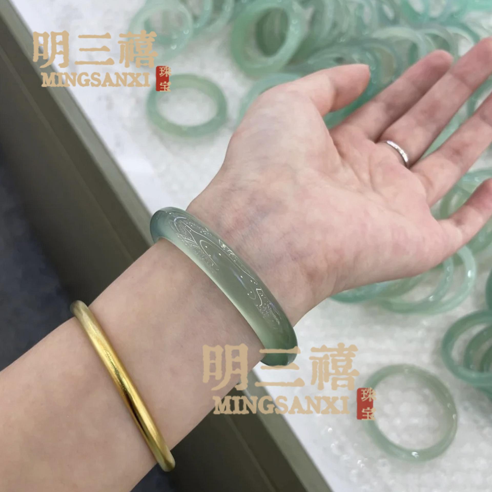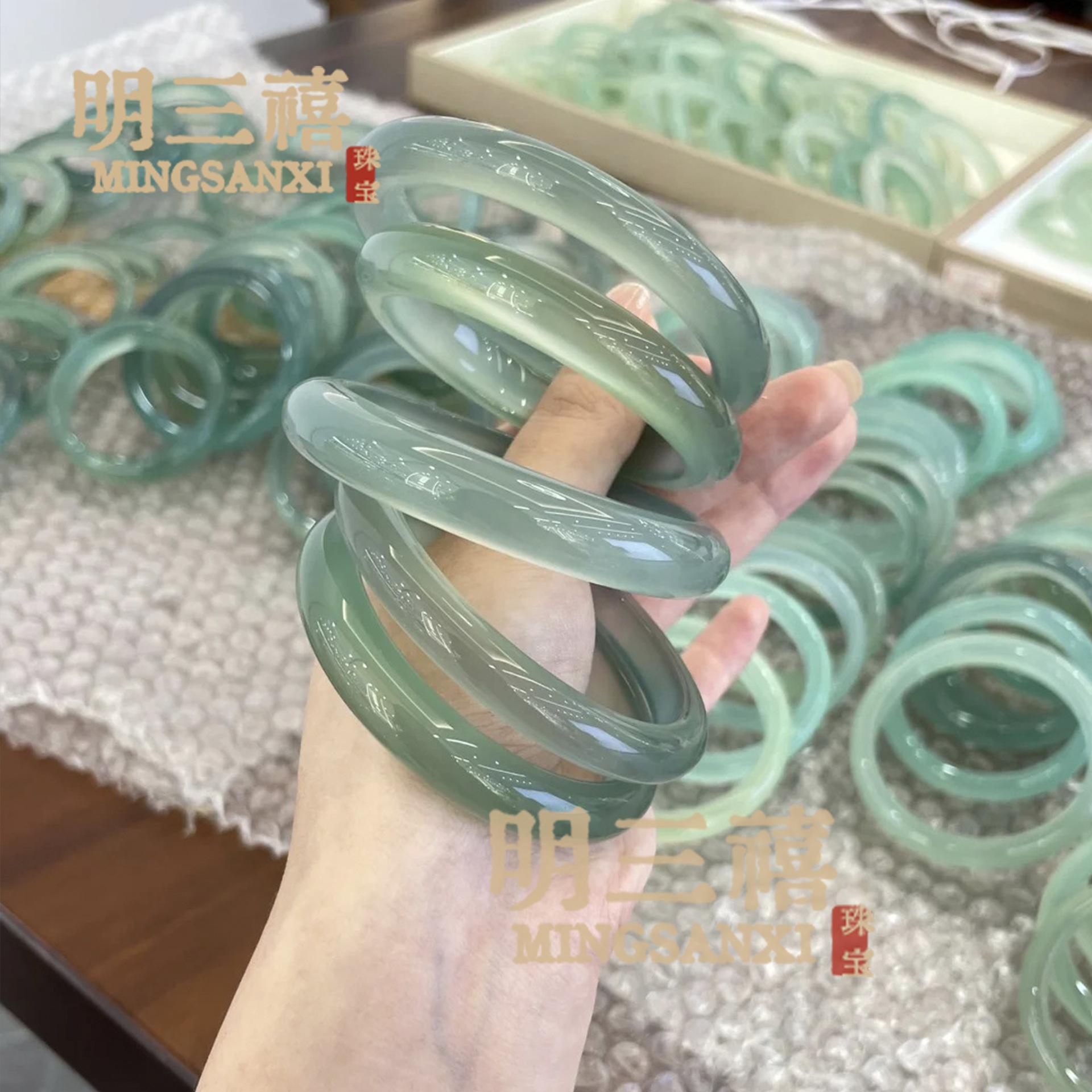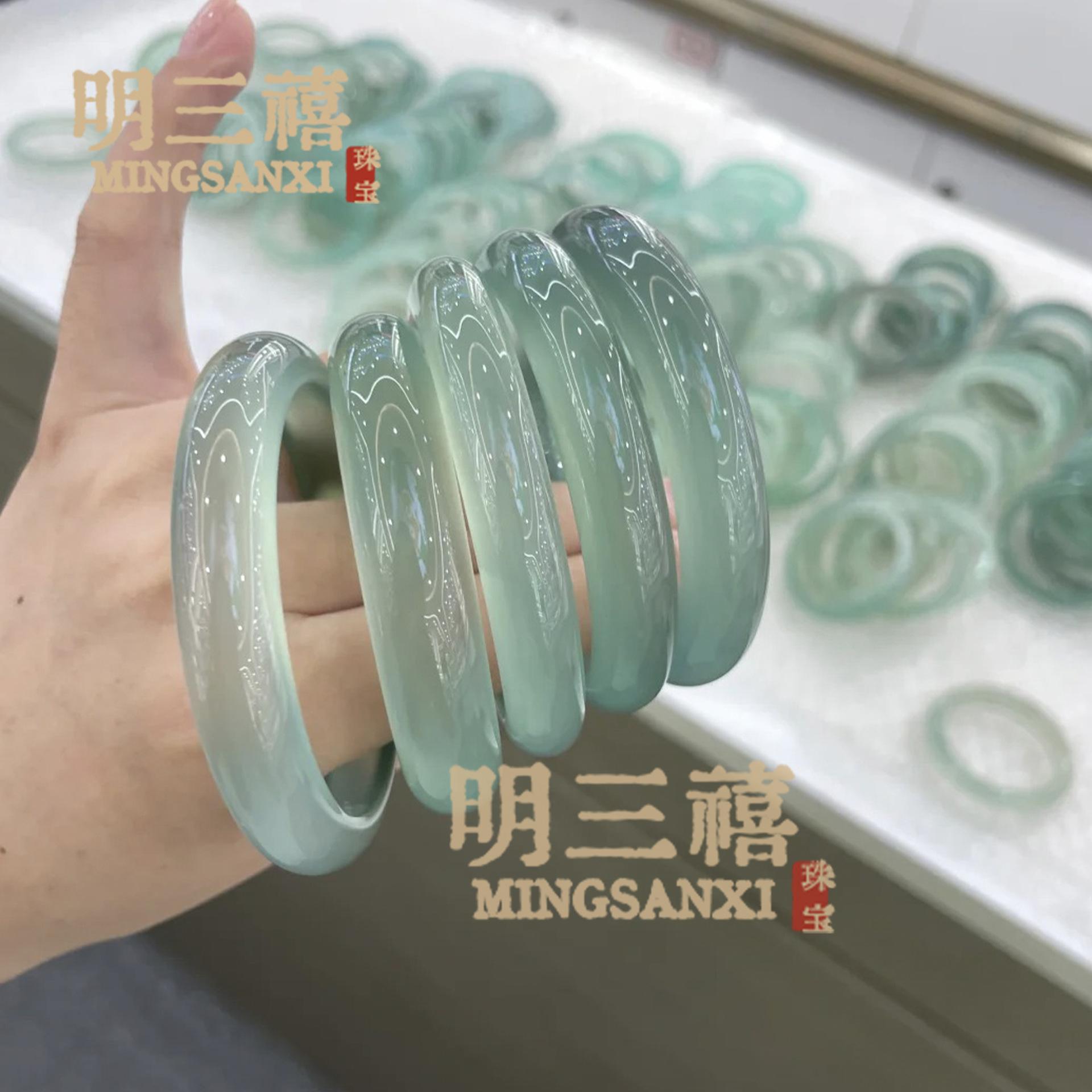 Pulsera de Ágata Verde Aceite Natural Tipo Hielo Yuanyang Dai Calcedonia Jade Pulsera para Mujer Jadeíta Color Pulsera Pulsera Verde Jade