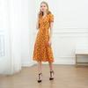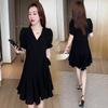 Nuevo vestido floral de verano 2024 con cuello en V para mujer, largo medio, adelgazante de cintura, elegante falda de gasa francesa