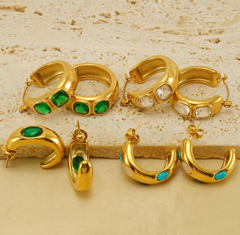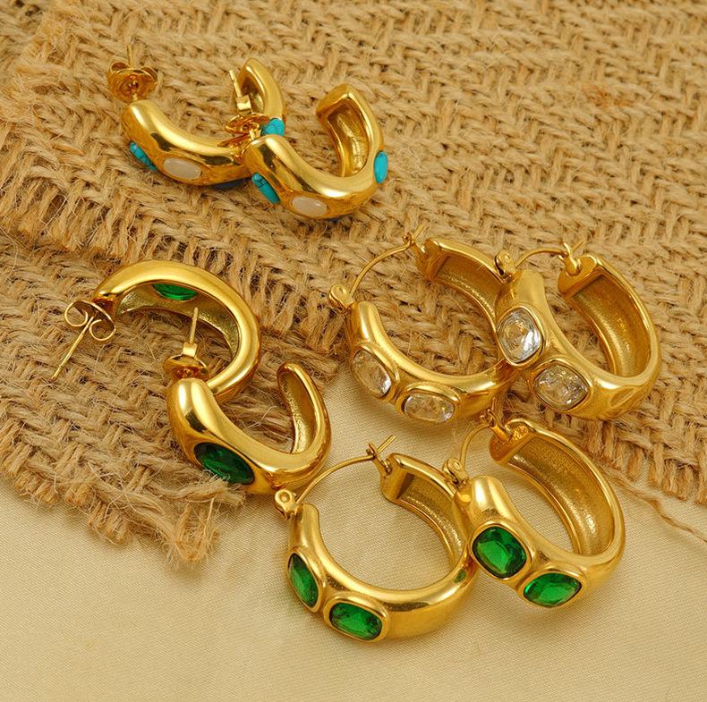 Pendientes pequeños de acero inoxidable con incrustaciones de circonitas de estilo transfronterizo para mujer, de estilo nuevo, de lujo, ligeros, de acero de titanio y combinables con Europa y América, al por mayor