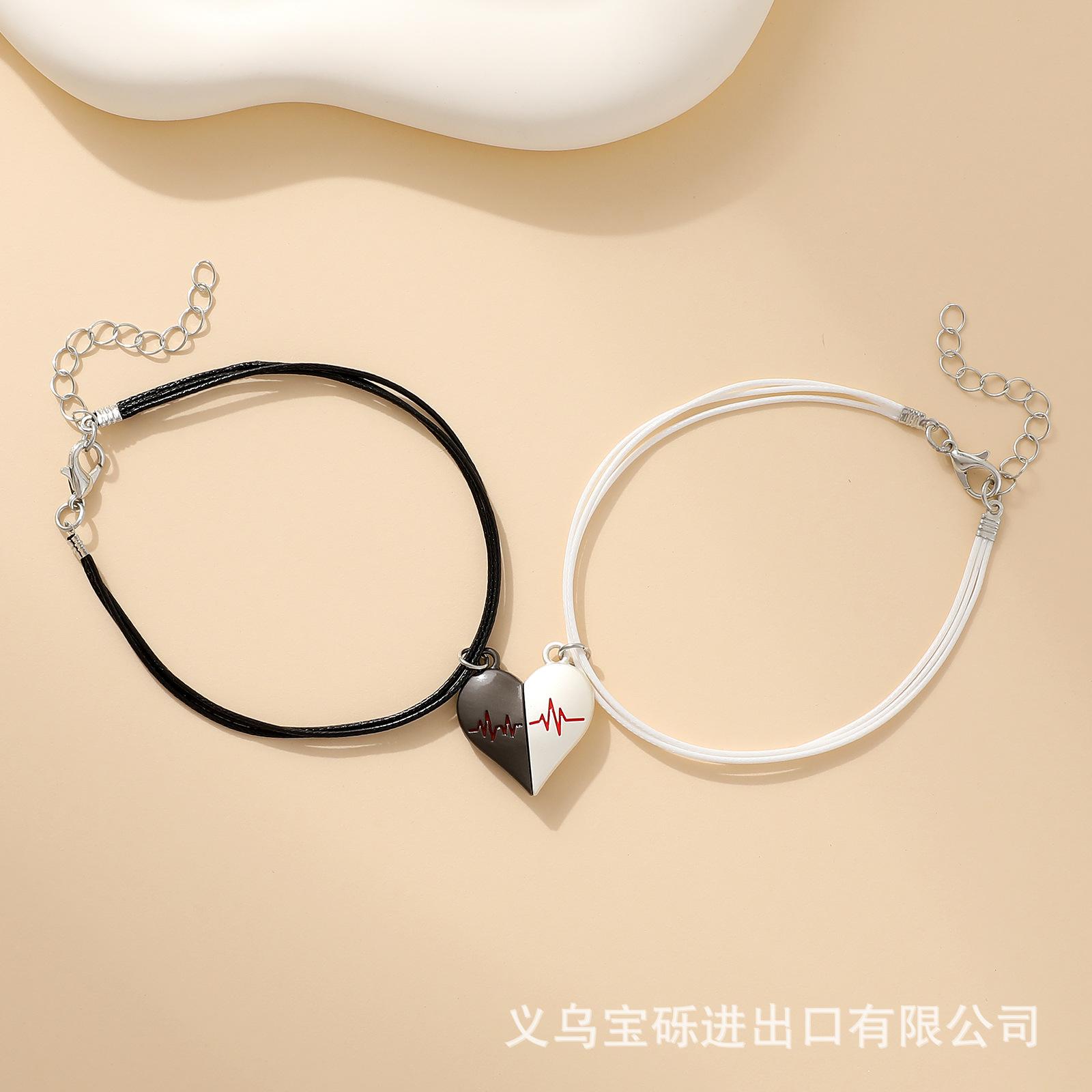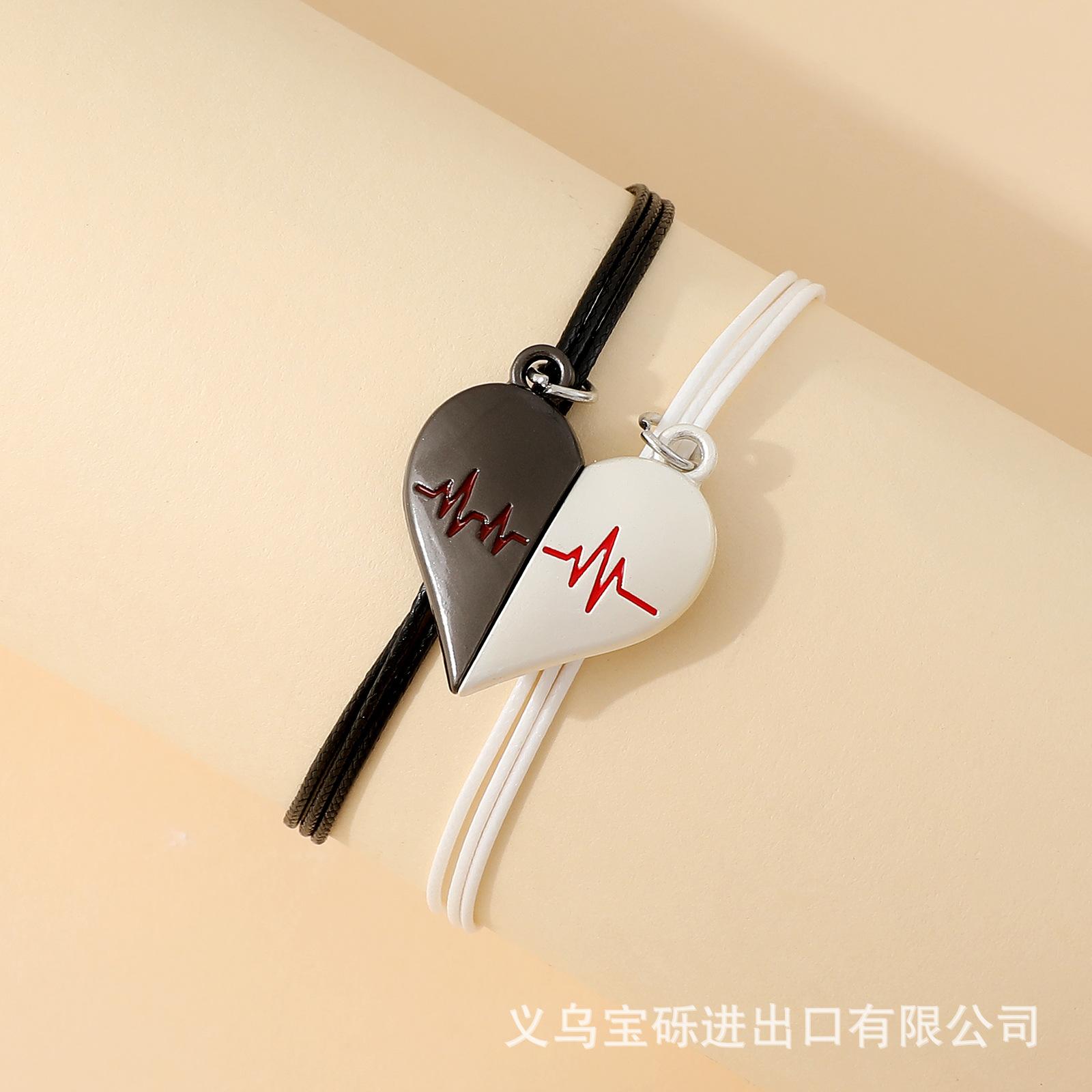 Pulsera de mano de amor caliente transfronterizo línea de cera amor ECG pulsera de pareja multicolor colgante magnético de amor pulsera de mano al por mayor