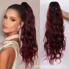 Peluca al por mayor de fábrica para mujer, cabello largo y rizado, cola de caballo roja, coleta alta, correa de agarre, clip, peluca de onda grande, cola de caballo