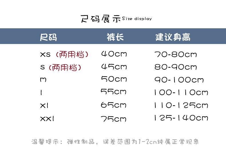 XS (dual-purpose) pants length 40 recommended height 70-80, S (dual-purpose gear) pants length 45 recommended ...