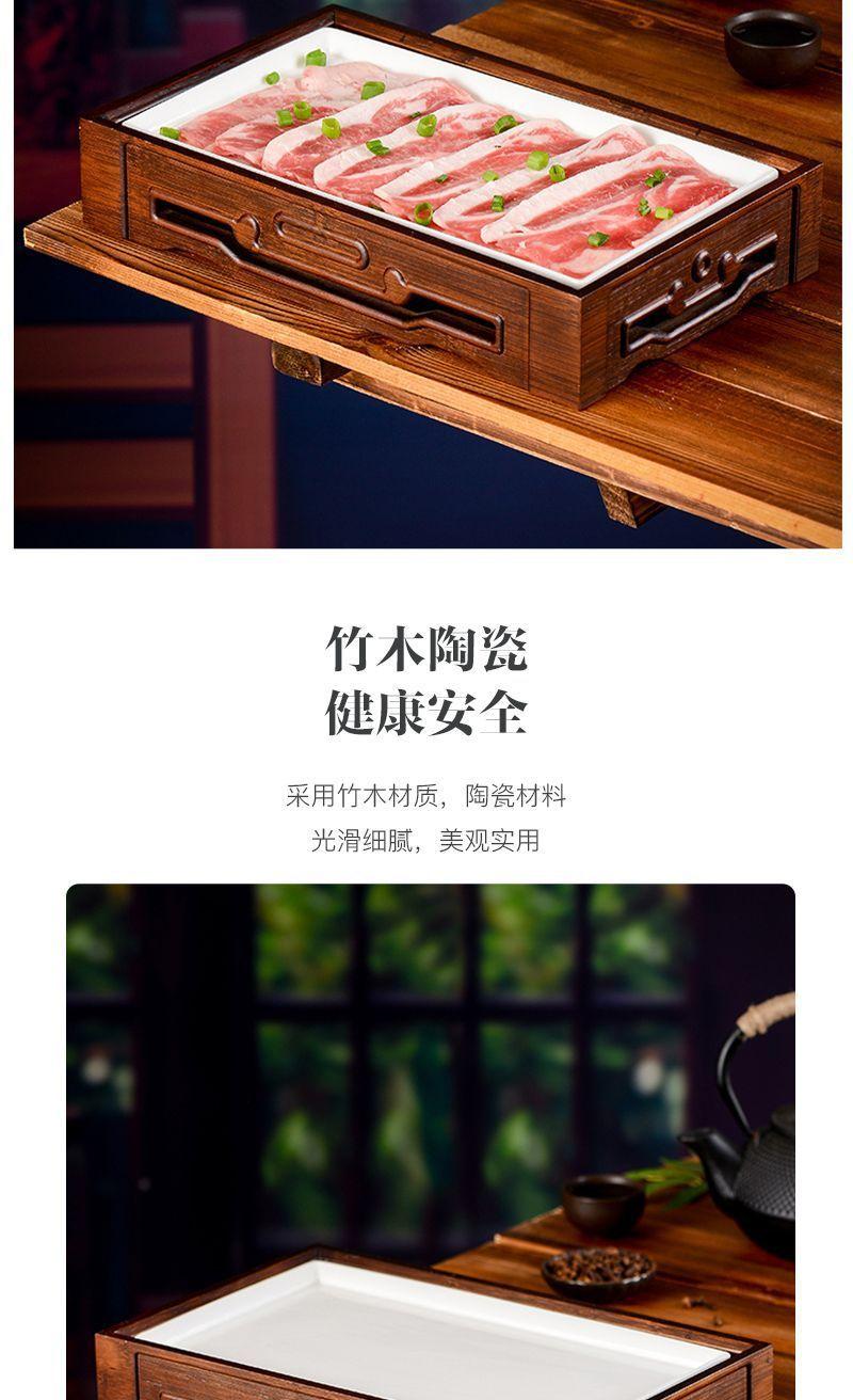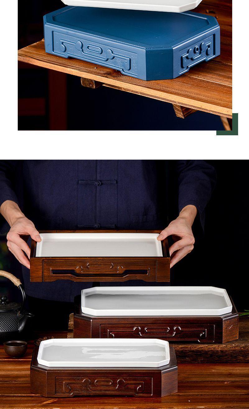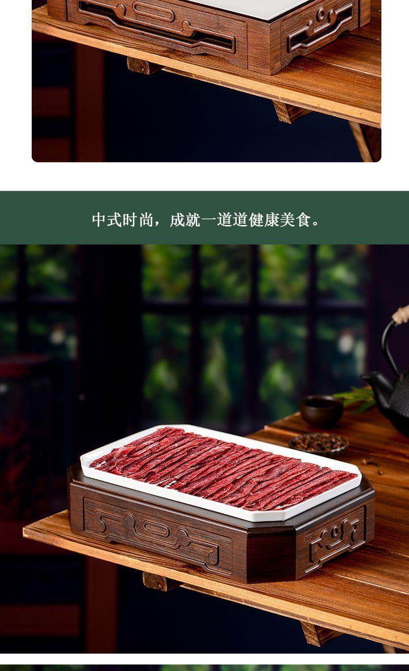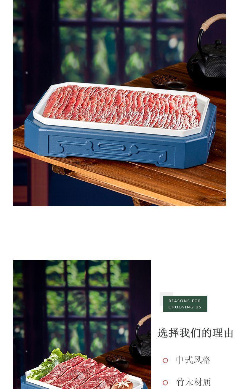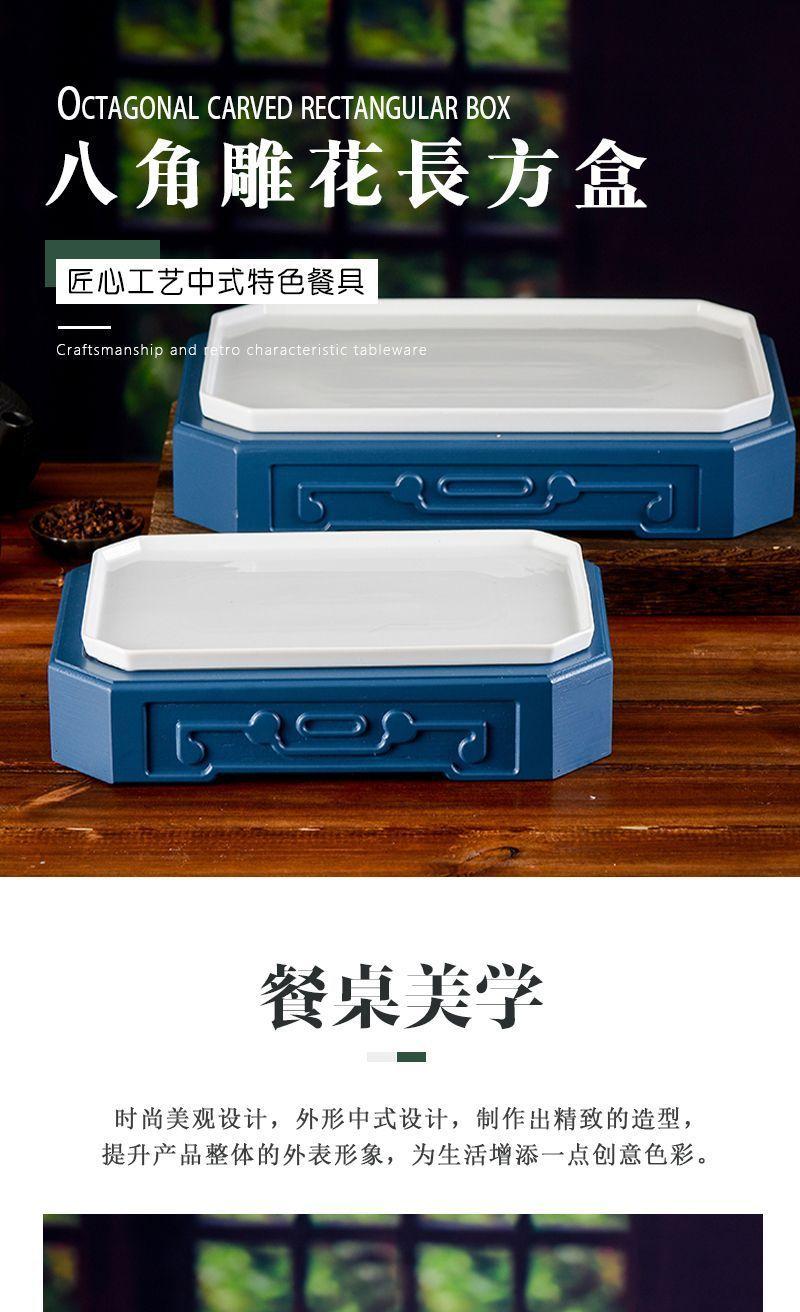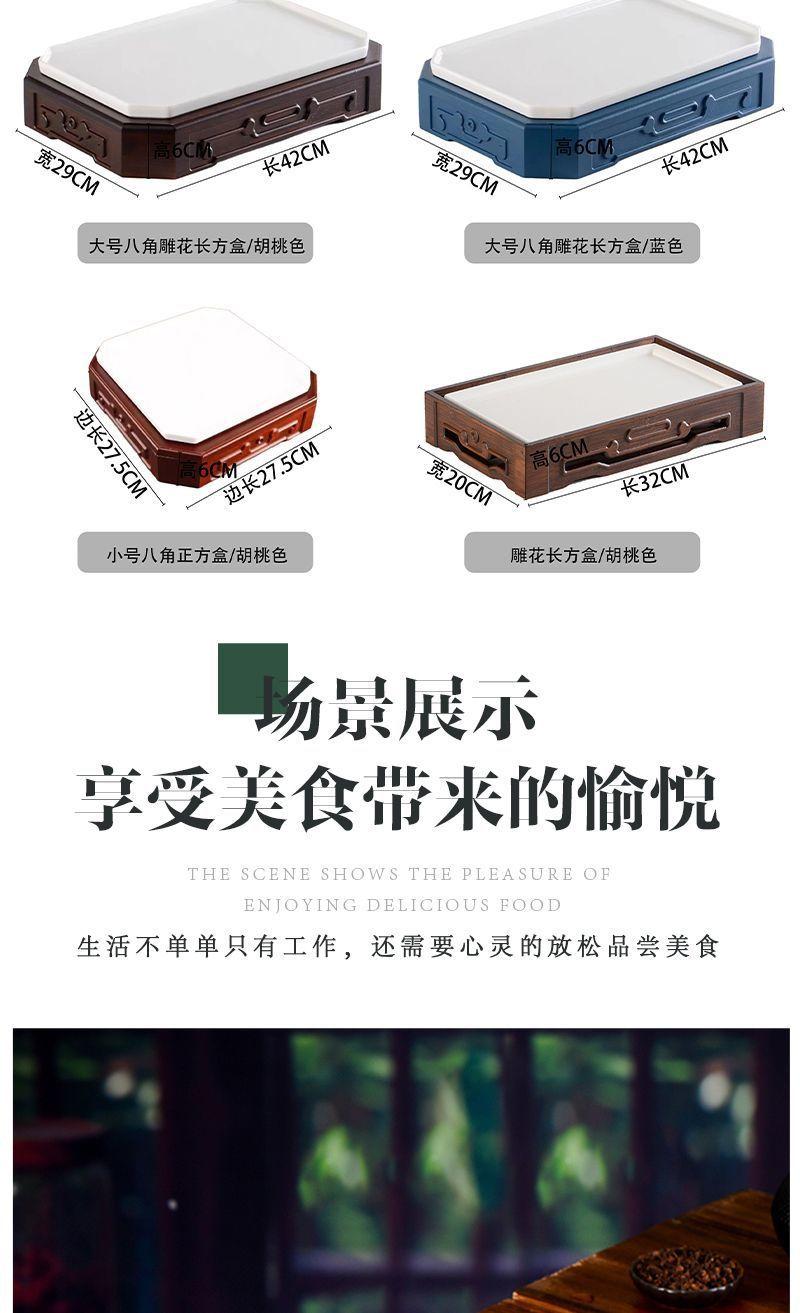 Bandeja octogonal rectangular de madera tallada de estilo chino, vajilla comercial creativa especial para restaurante con rollos de carne de res y cordero