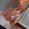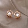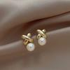 1#Square pearl earrings [silver needle]