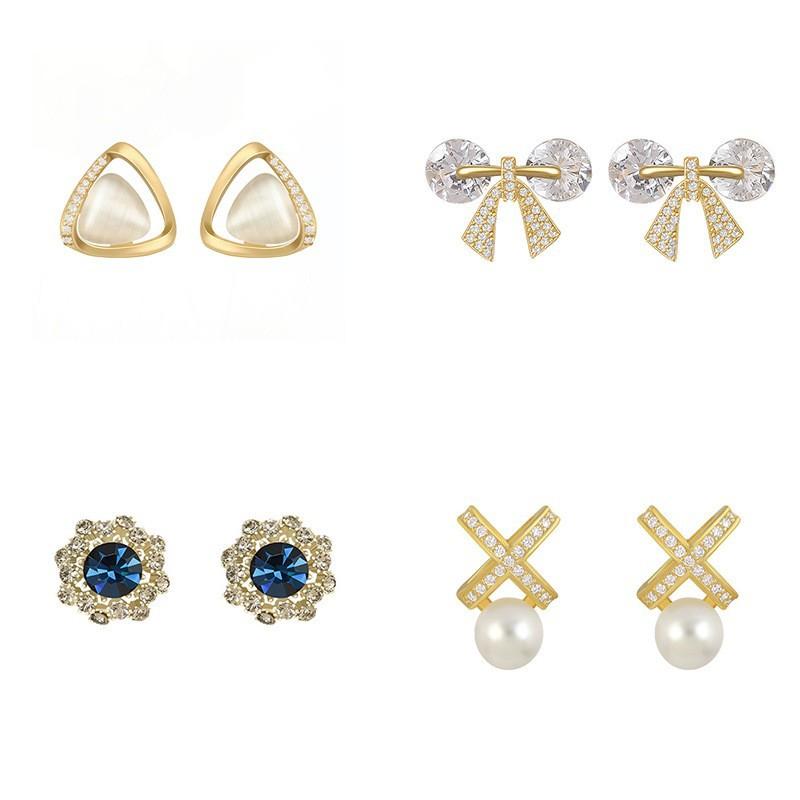 1#Square pearl earrings [silver needle], 2#Dark blue cat’s eye [silver needle], 3#Bread bead earrings [copper ...
