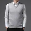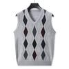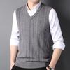 Chaleco de lana de punto con cuello en V para hombre, informal, de negocios, sin mangas, con caballo de lana, para otoño e invierno.