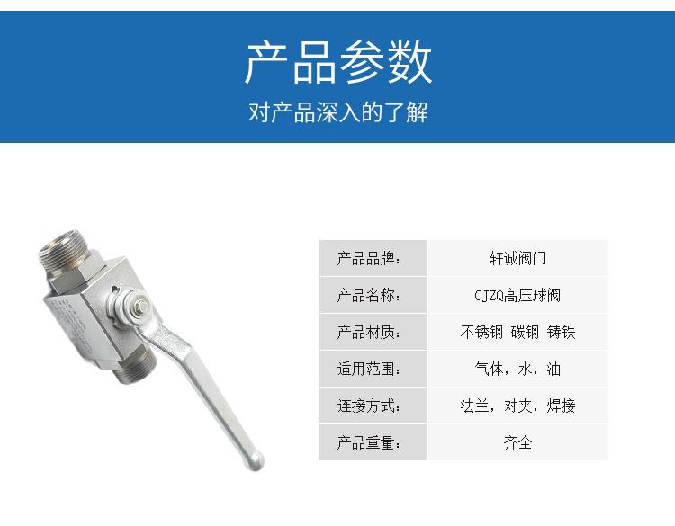 La válvula de bola de alta presión CJZQ es adecuada para varias tuberías de sistemas hidráulicos y sistemas químicos, para abrir y cerrar.