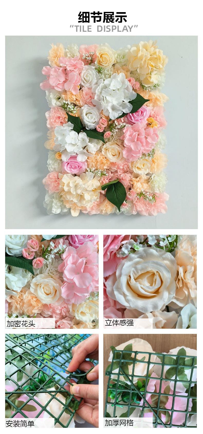 Planta artificial de pared, pared de flores, fondo de pared, flor artificial, rosa de plástico, flor artificial, planta verde, decoración, boda, boda, floral