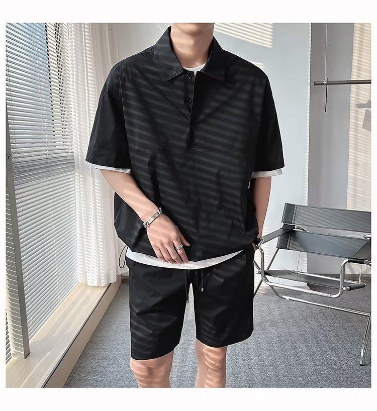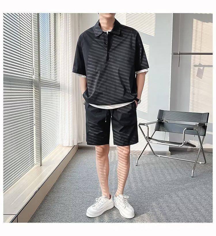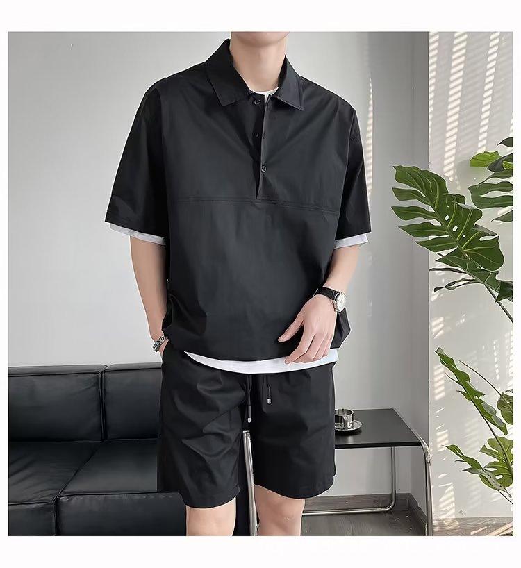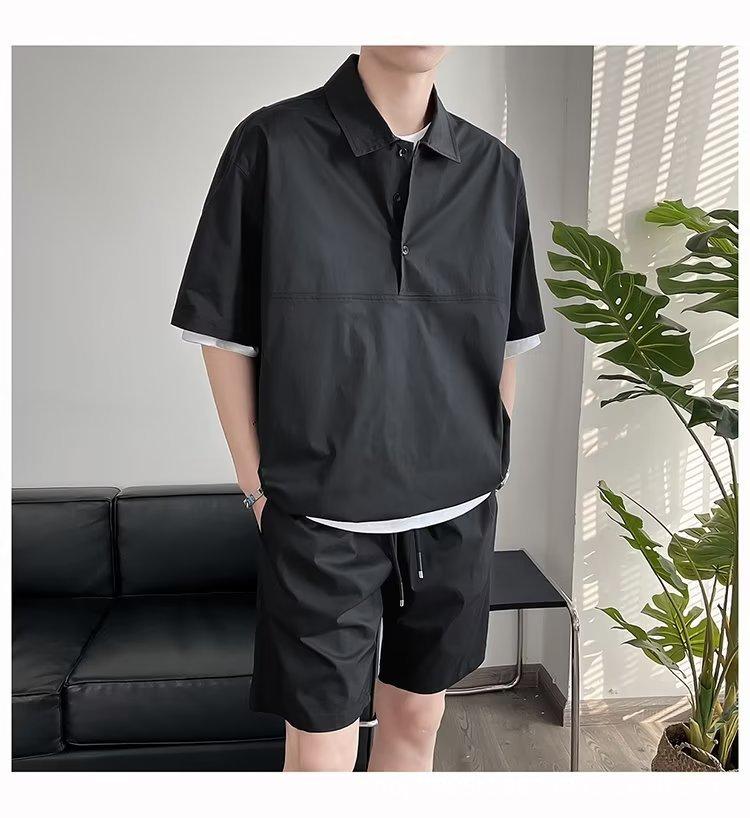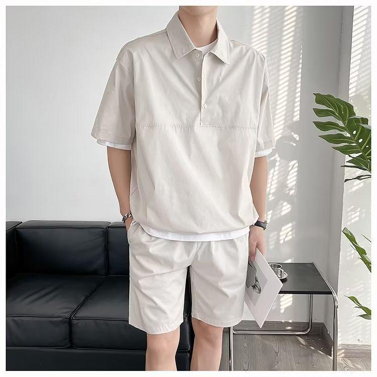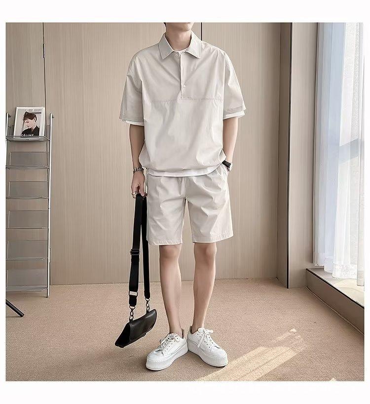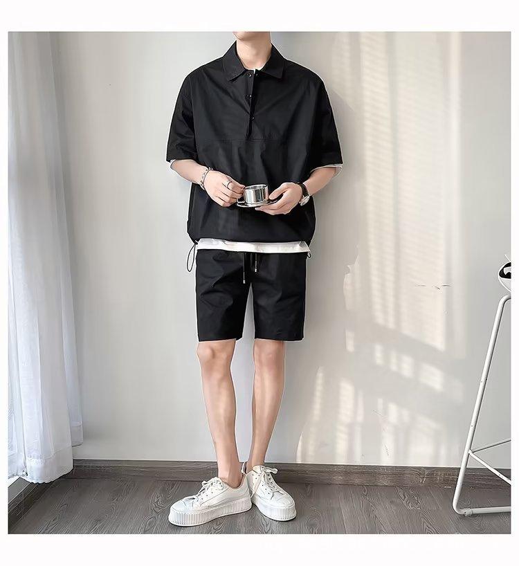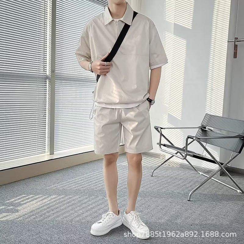 Compra Conjunto de Verano de Color Sólido para Hombre, Holgado Casual, Shorts, Manga Corta, Estilo Coreano, Combinable con Todo, Polo, Conjunto de Dos Piezas, ins a la Moda al por mayor en Joom.pro