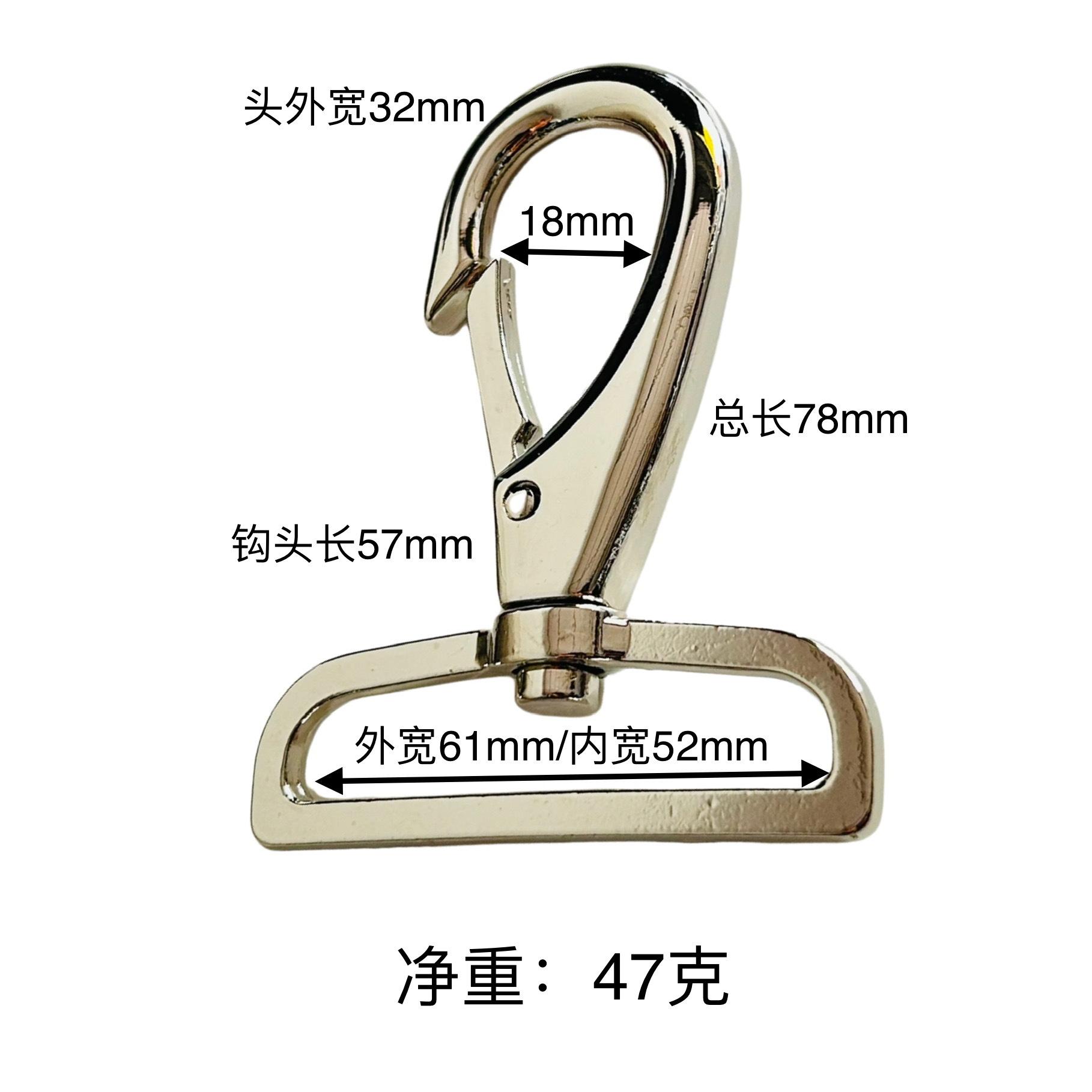 Fábrica en stock, venta al por mayor, accesorios de hardware para equipaje, hebilla de gancho grande de 50 mm, hebilla de gancho ajustable, hebilla para perro mascota, hebilla de camarón gruesa