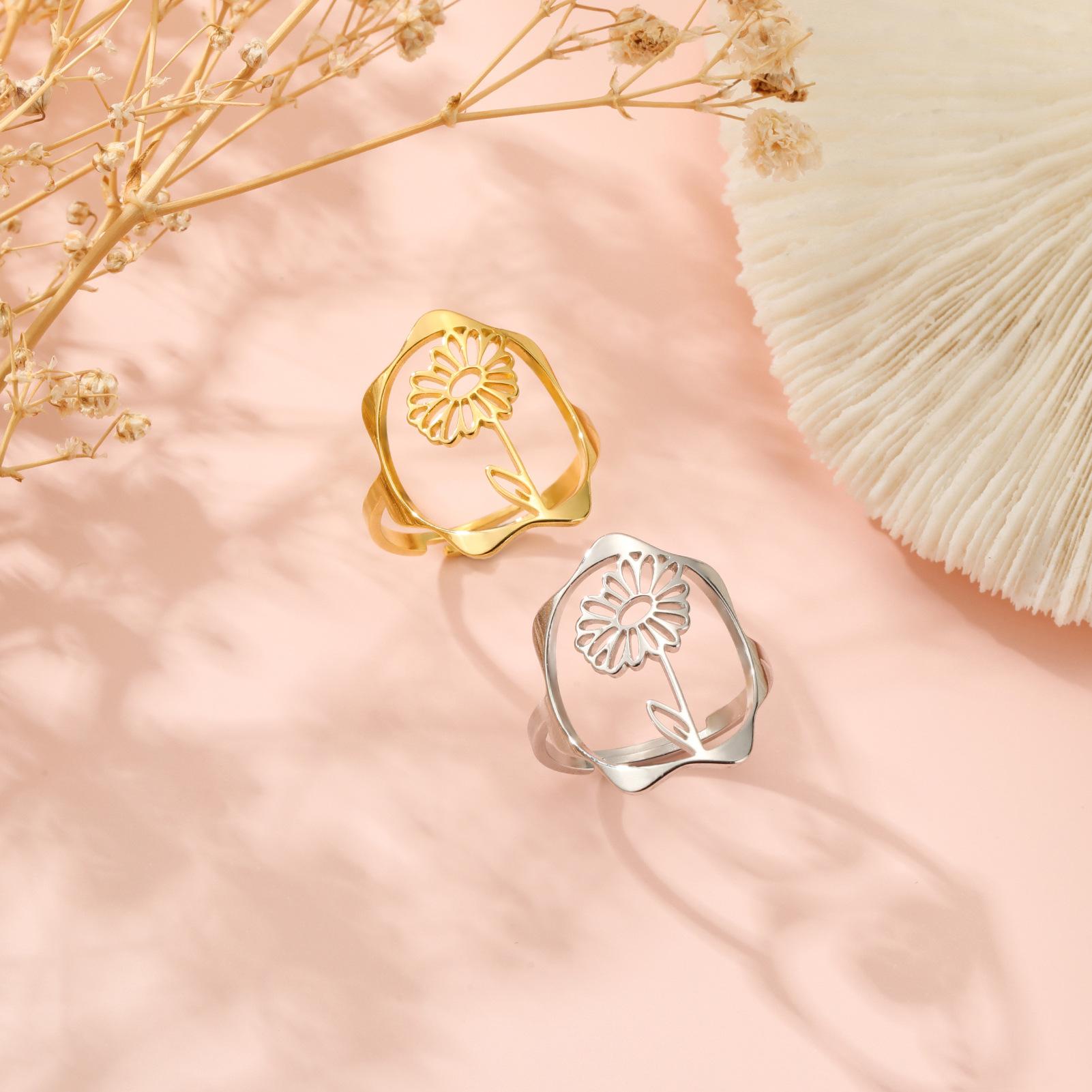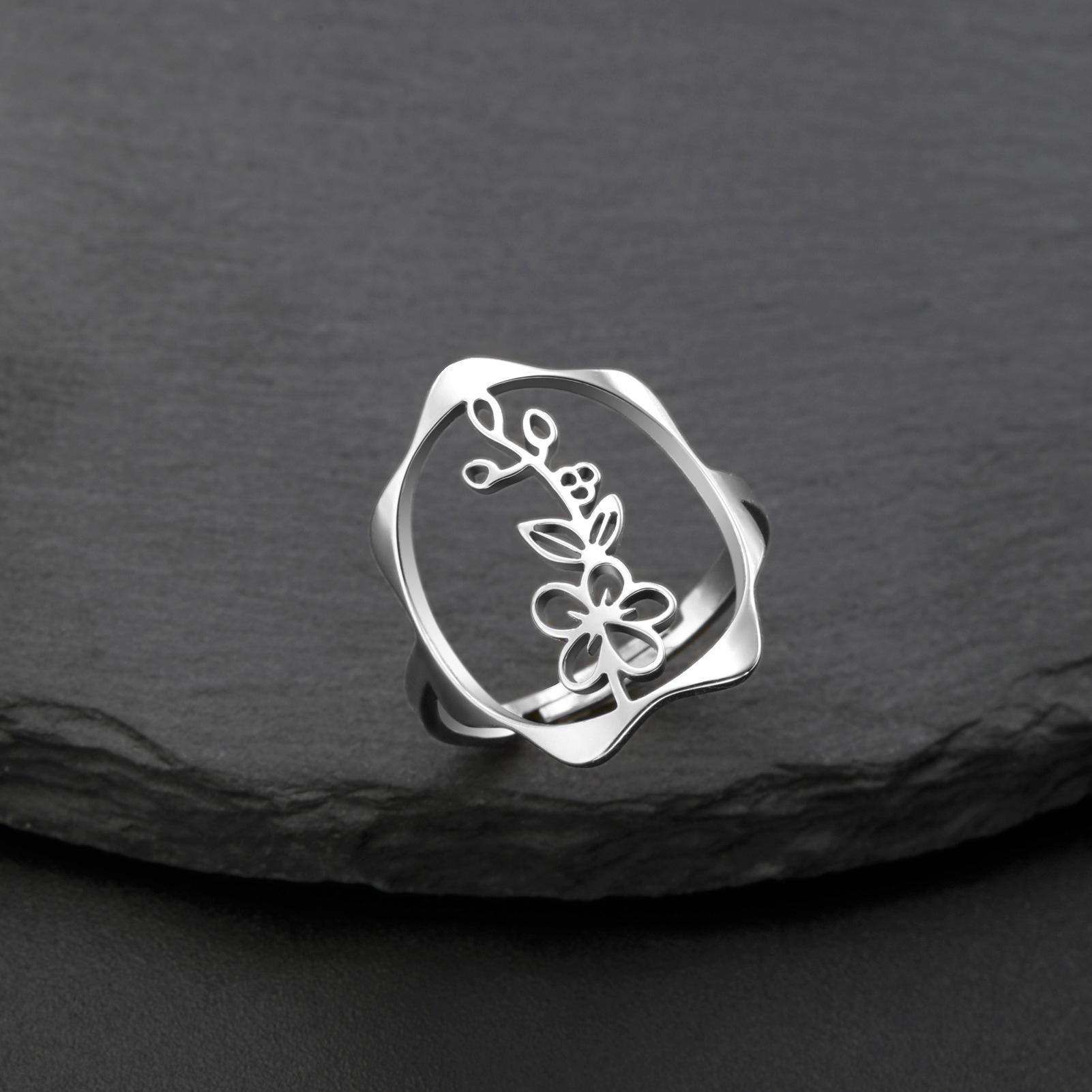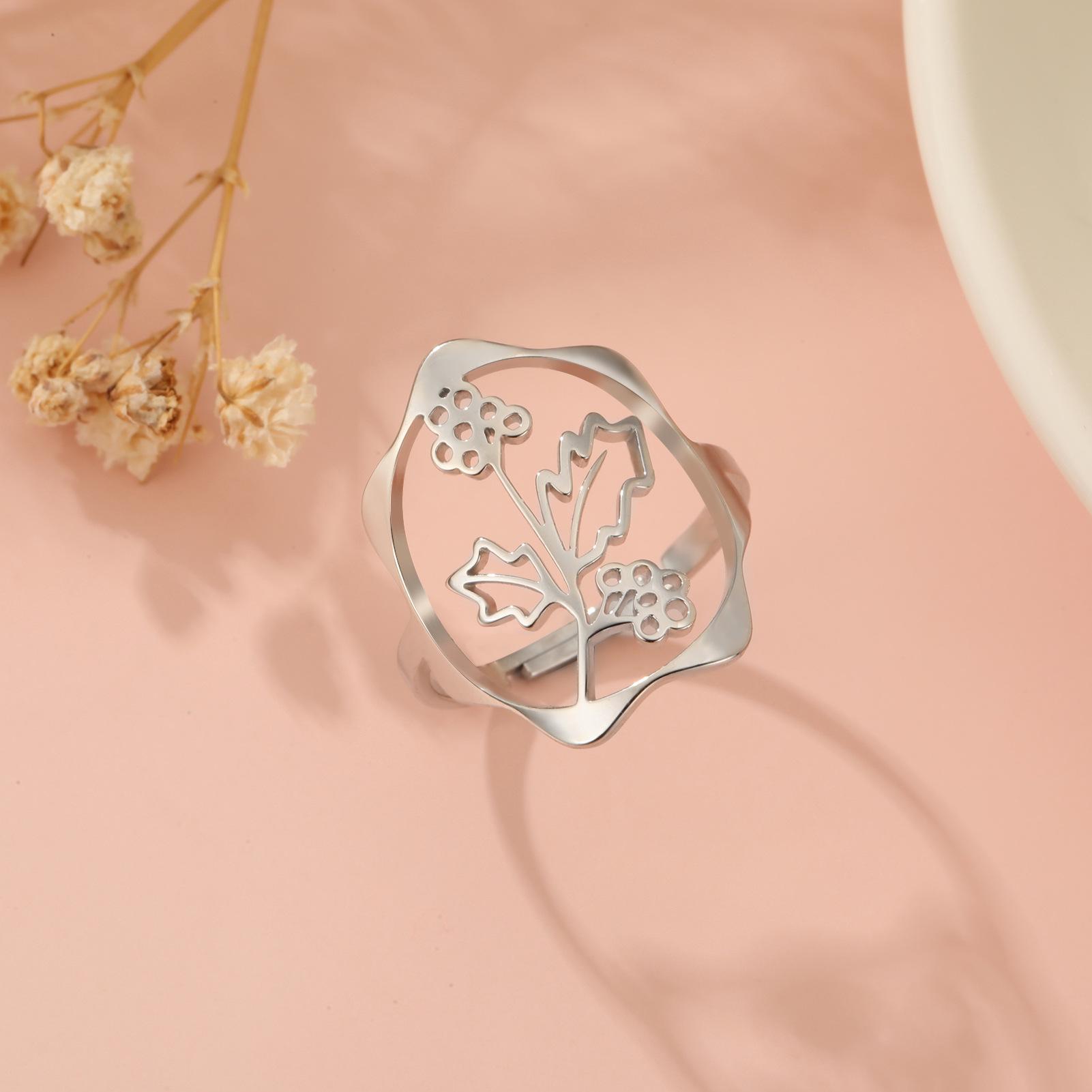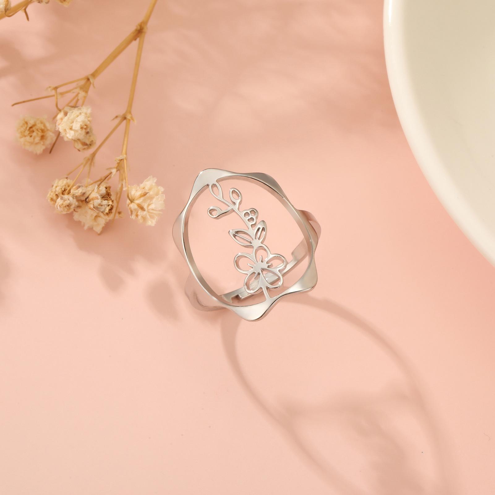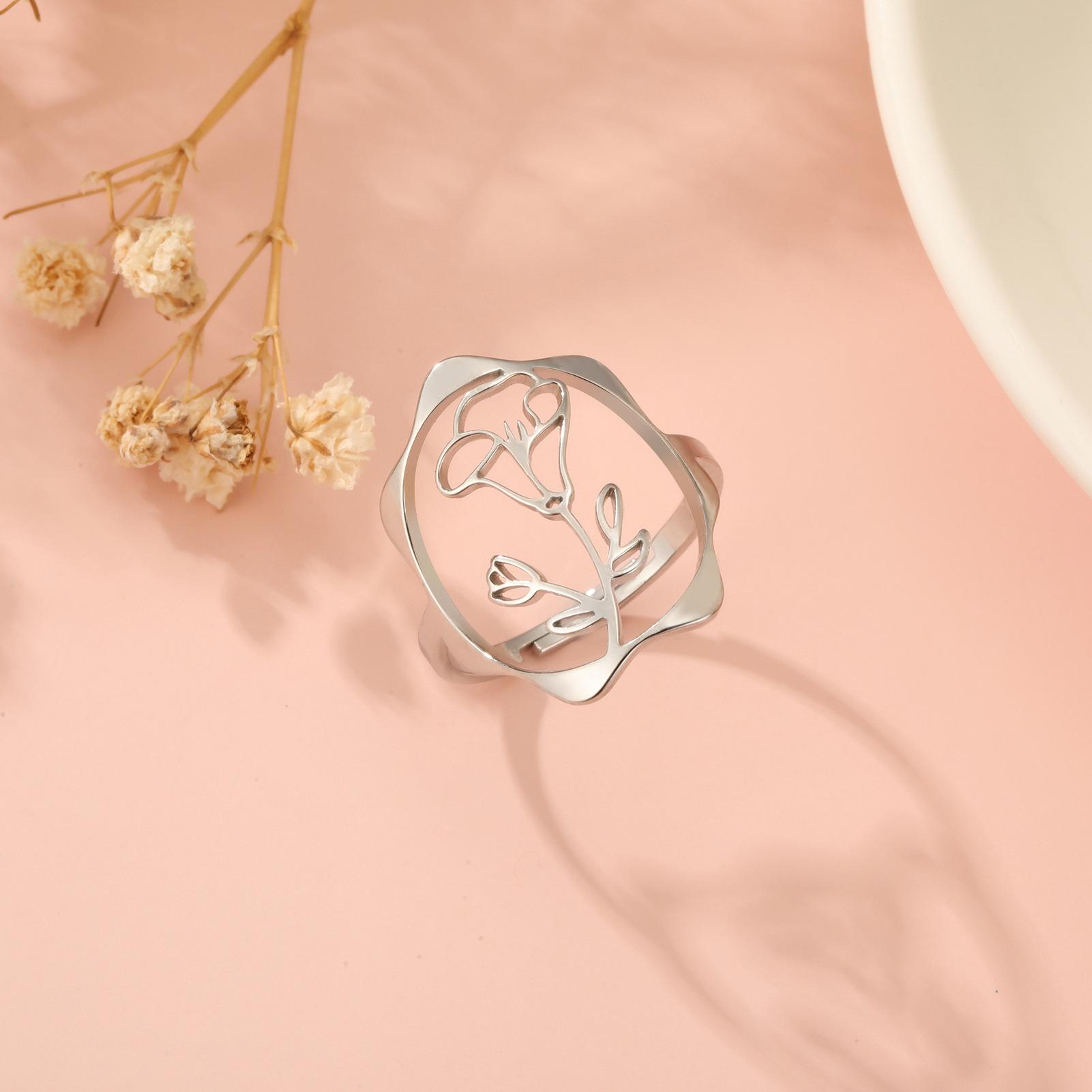 Anillo de flor joyería superventas moda simple estilo dulce acero inoxidable ajustable hueco anillo de flor de cumpleaños de diciembre