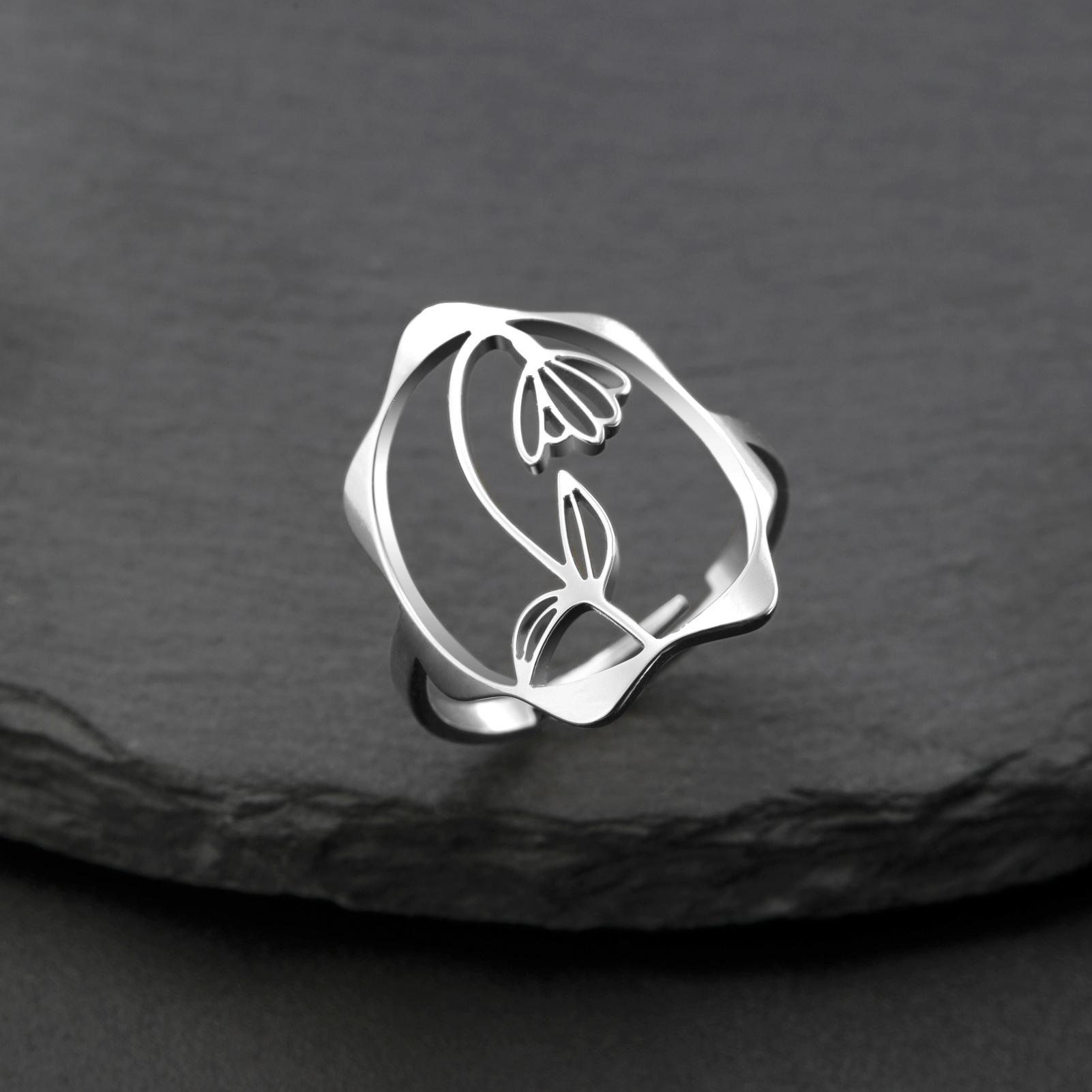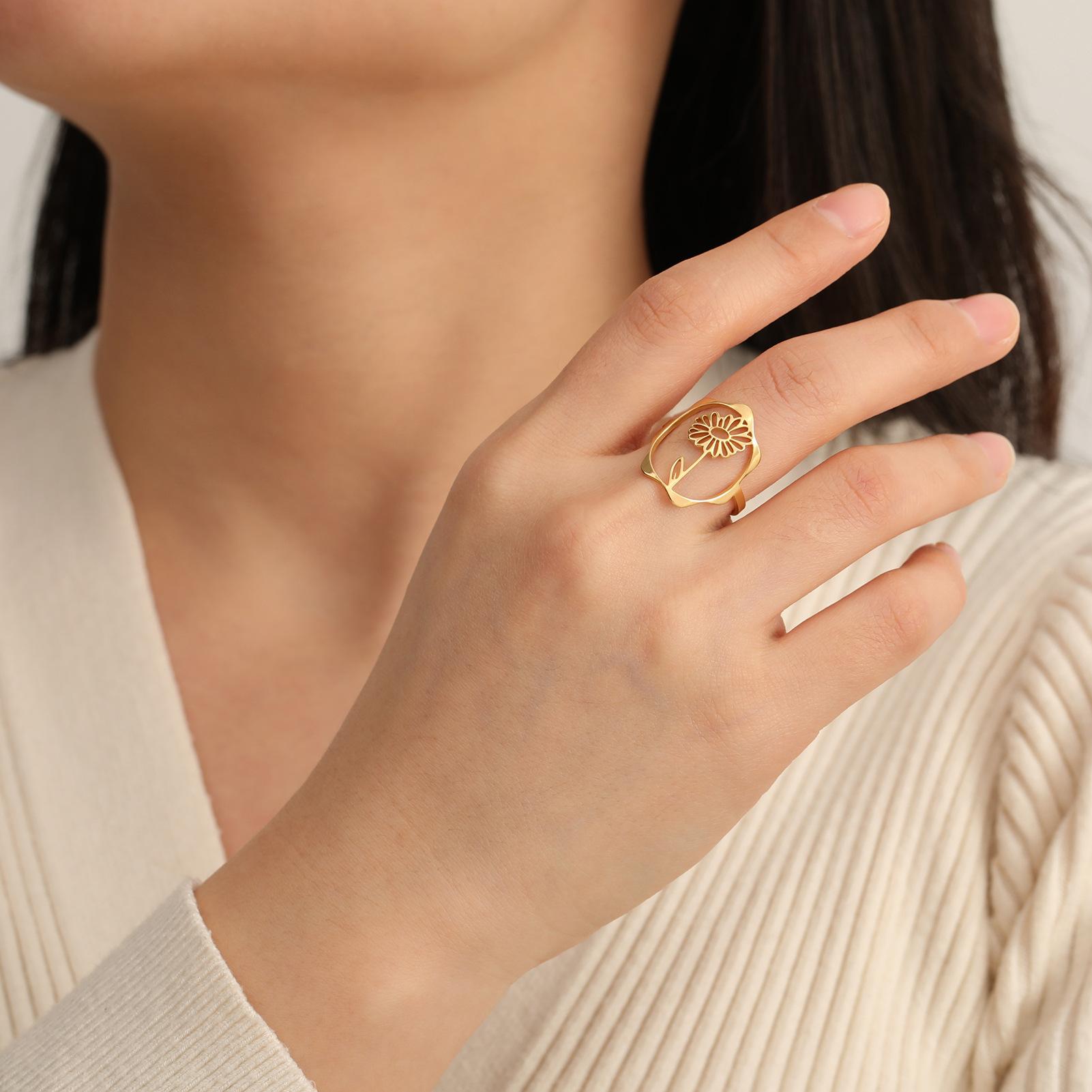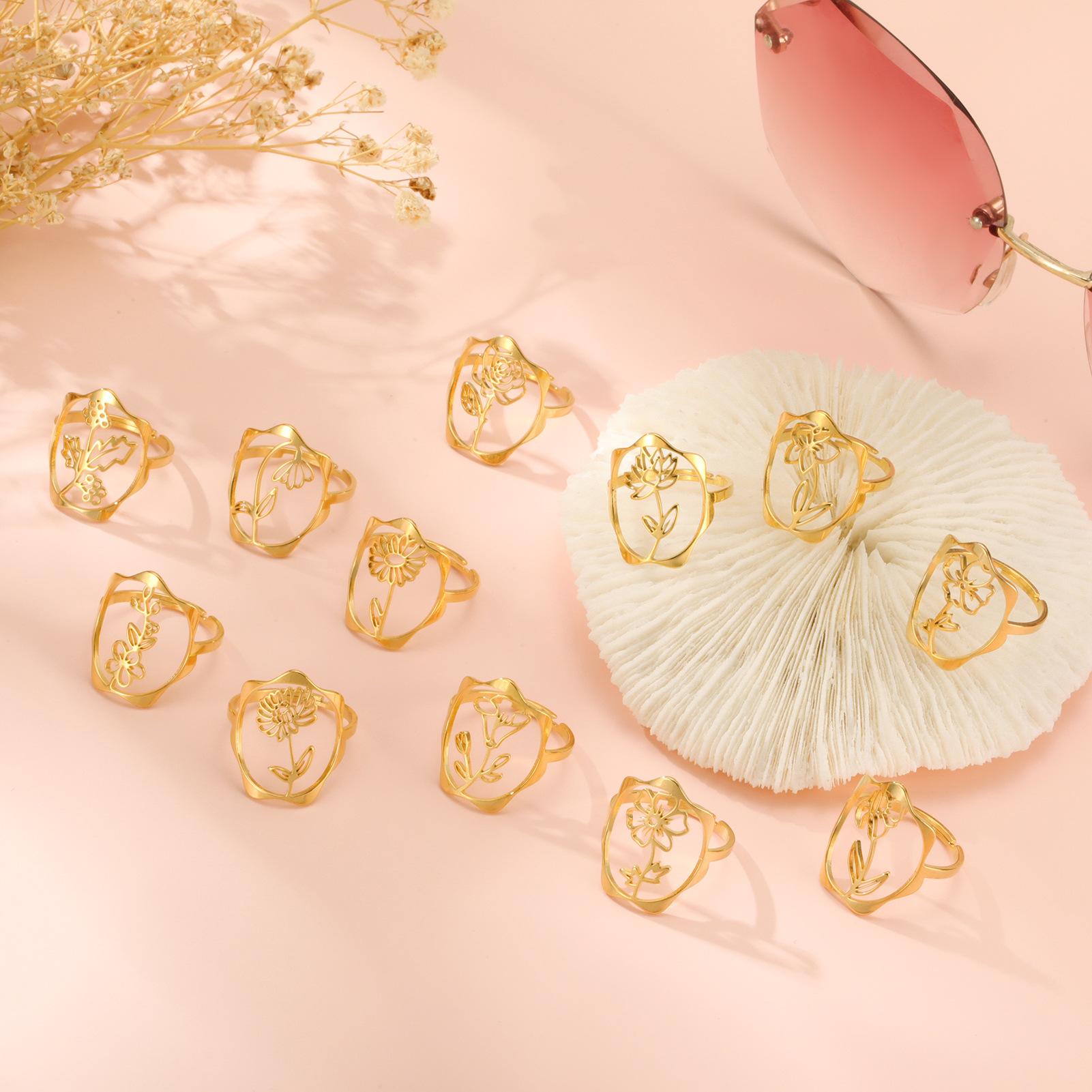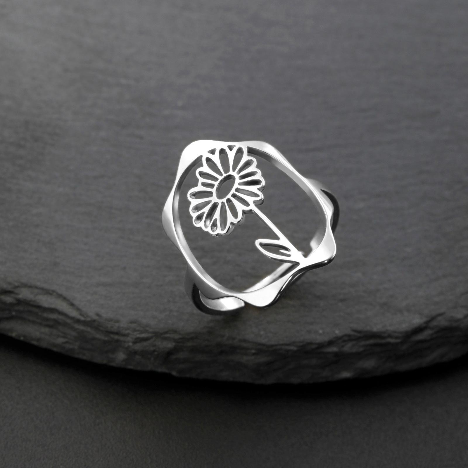 Anillo de flor joyería superventas moda simple estilo dulce acero inoxidable ajustable hueco anillo de flor de cumpleaños de diciembre